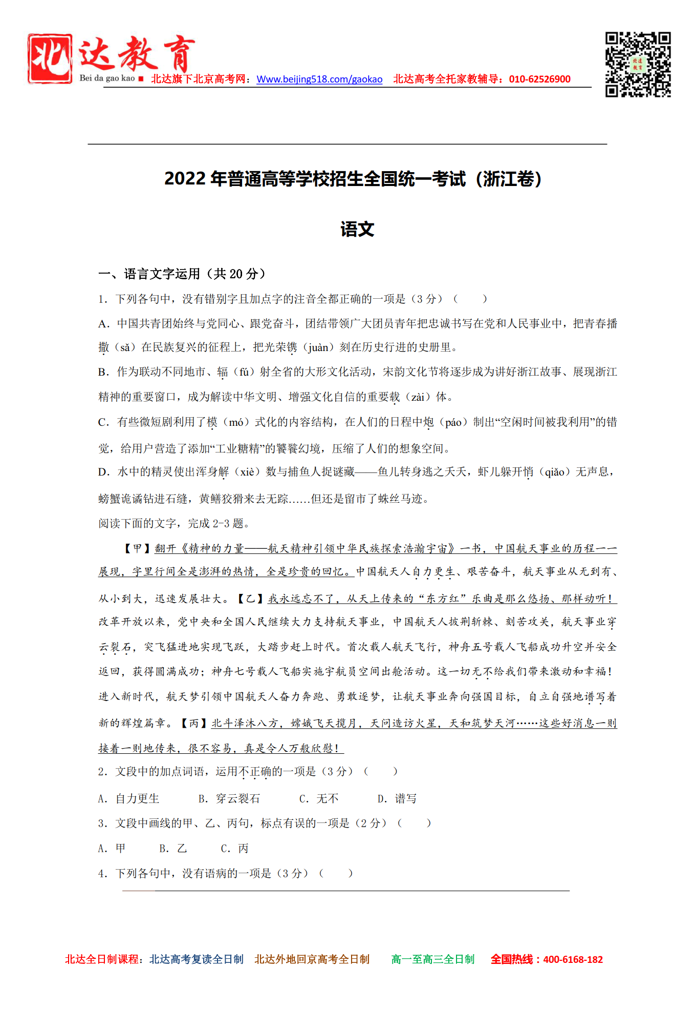 北京admw360教研组为大家整理了2022年高考(浙江卷)语文试题及答案解析,希望对大家有所帮助。