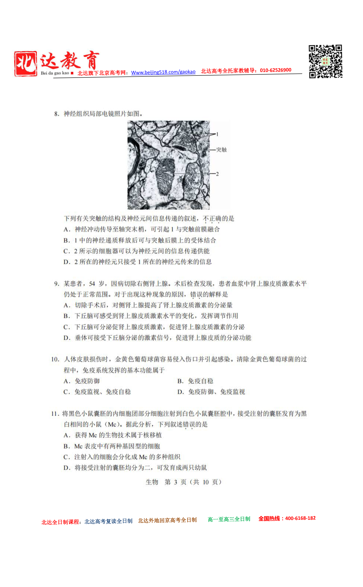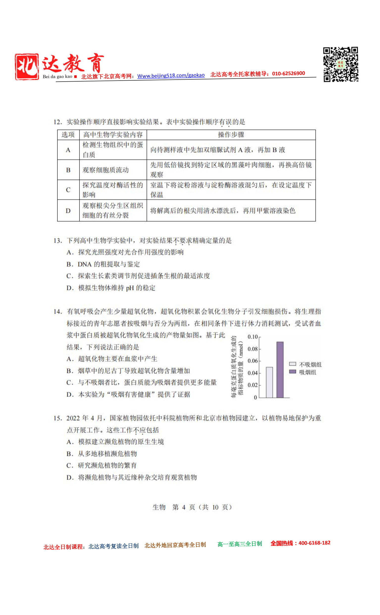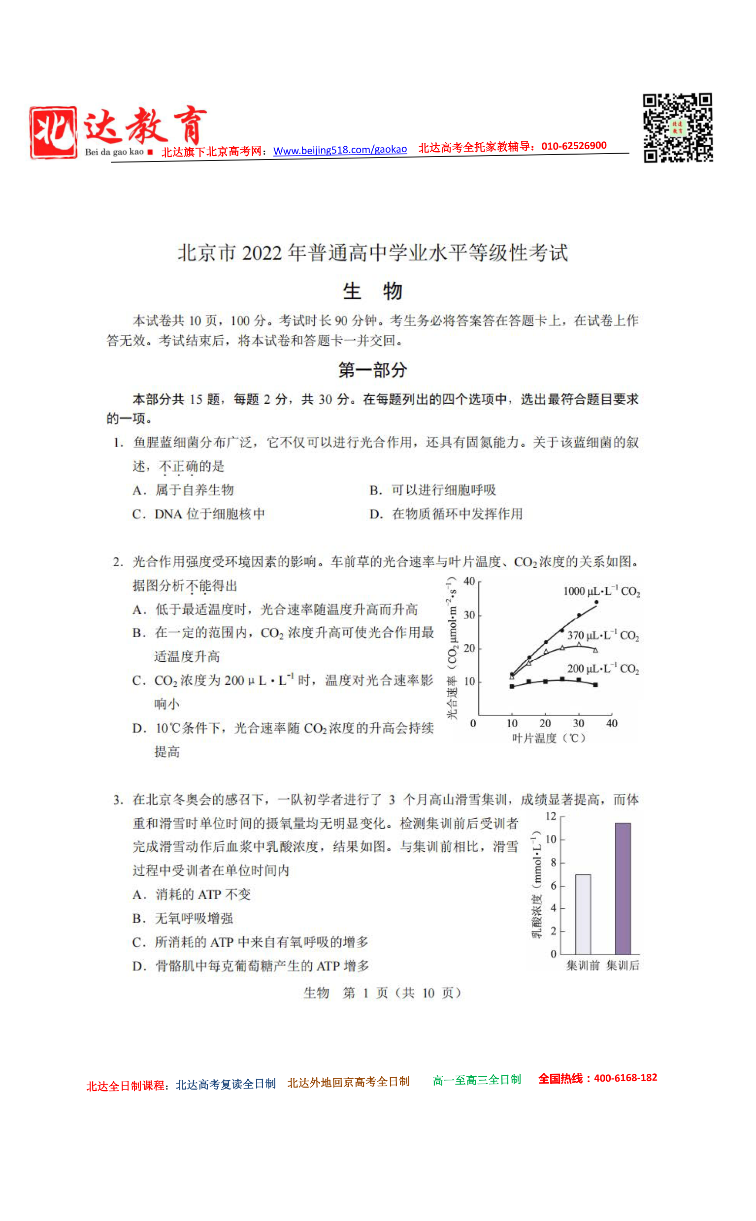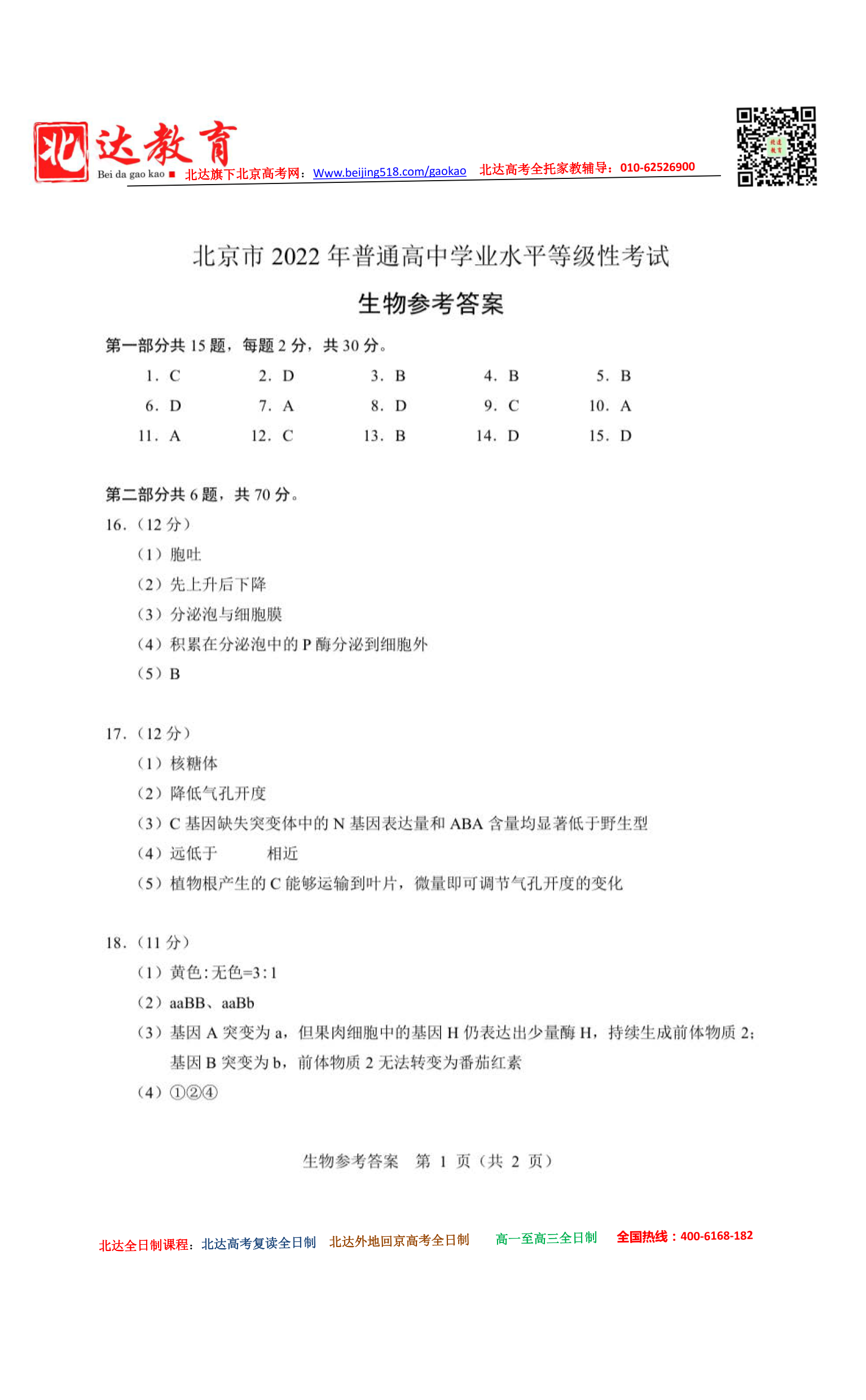 北京admw360教研组为大家整理了2022年高考(北京卷)生物试题及答案,希望对大家有所帮助。