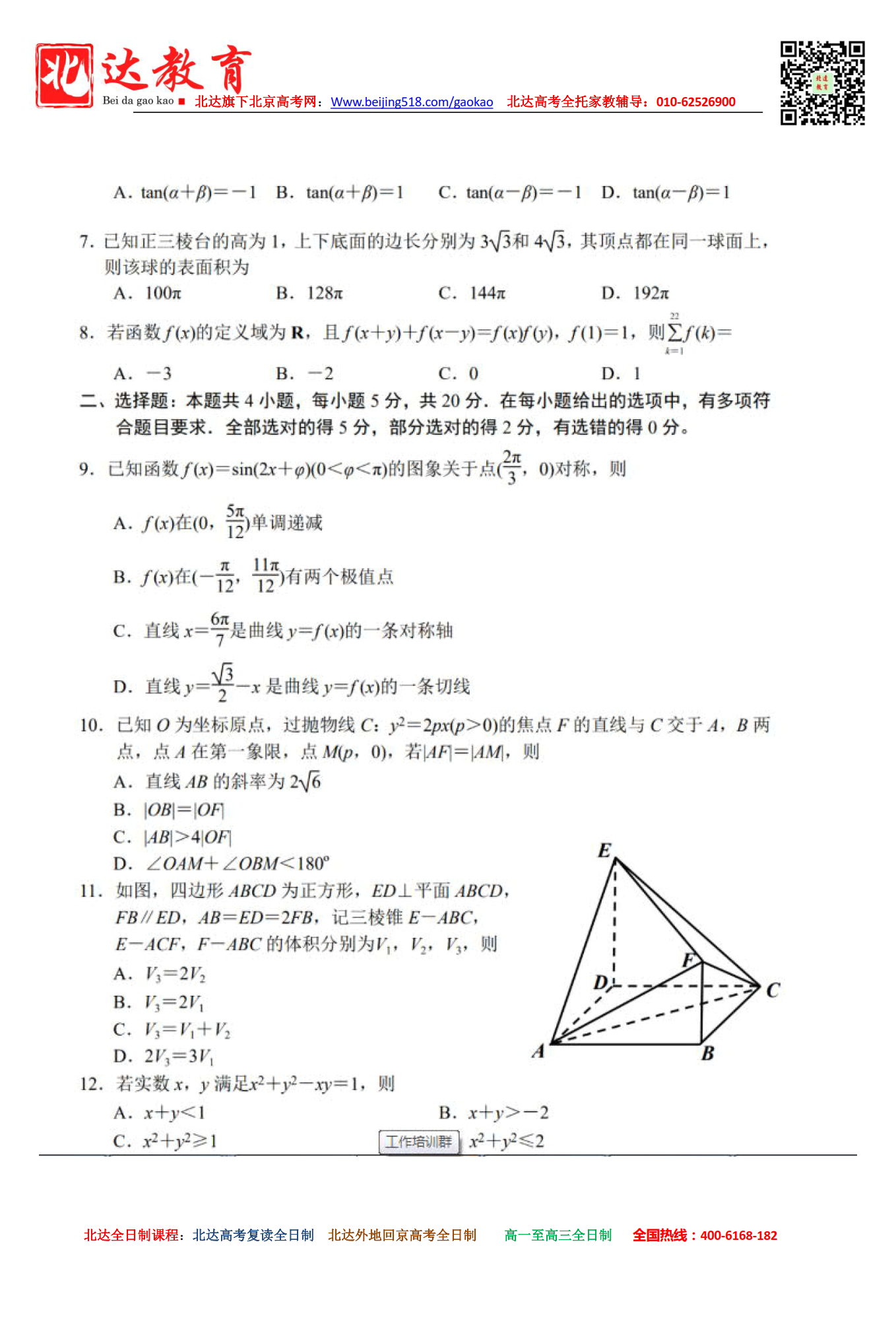 北京admw360教研组为大家整理了2022年新高考全国2卷数学试题及答案解析,希望对大家有所帮助。