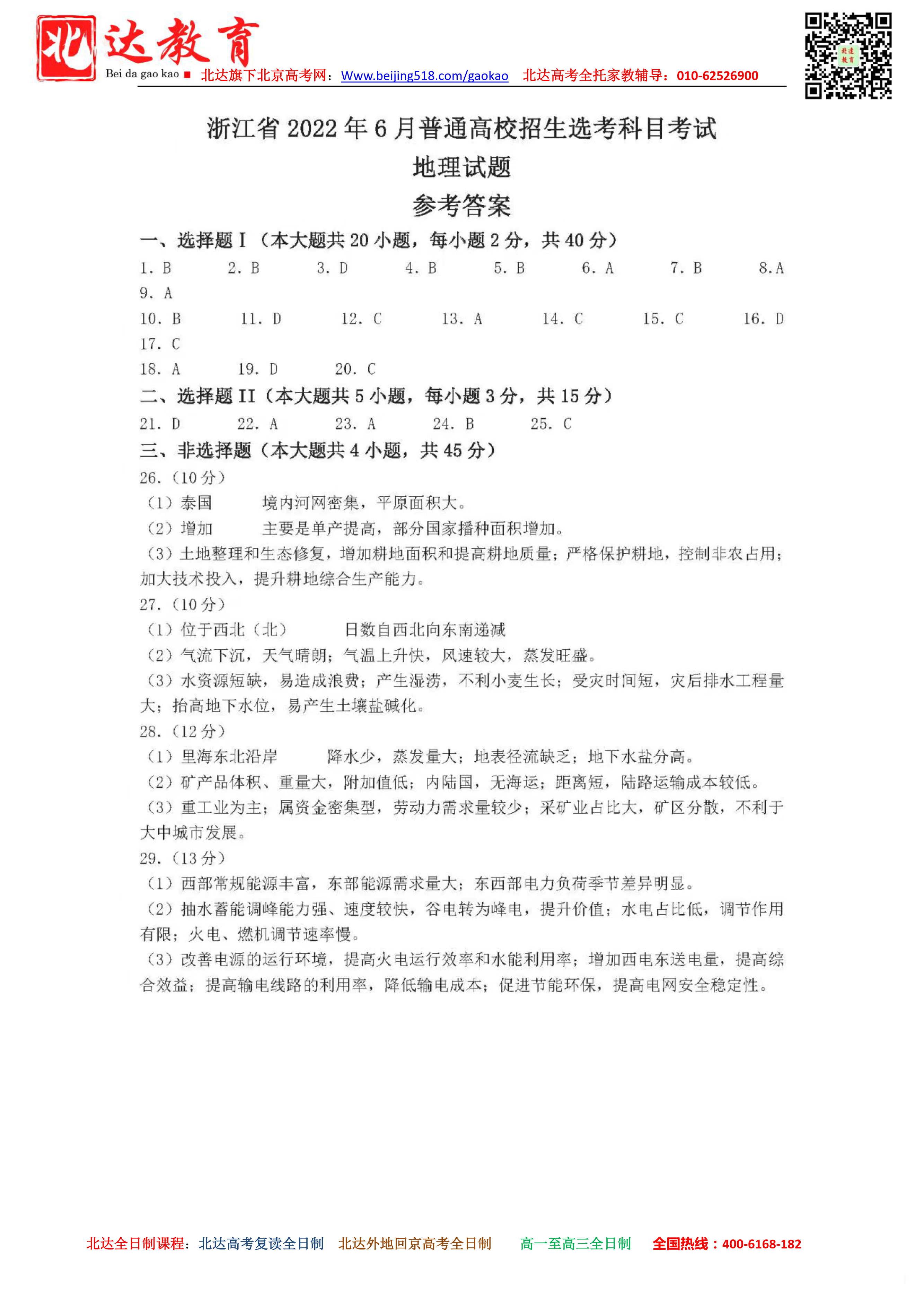 北京admw360教研组为大家整理了2022年高考(浙江卷)地理试题及答案解析,希望对大家有所帮助。