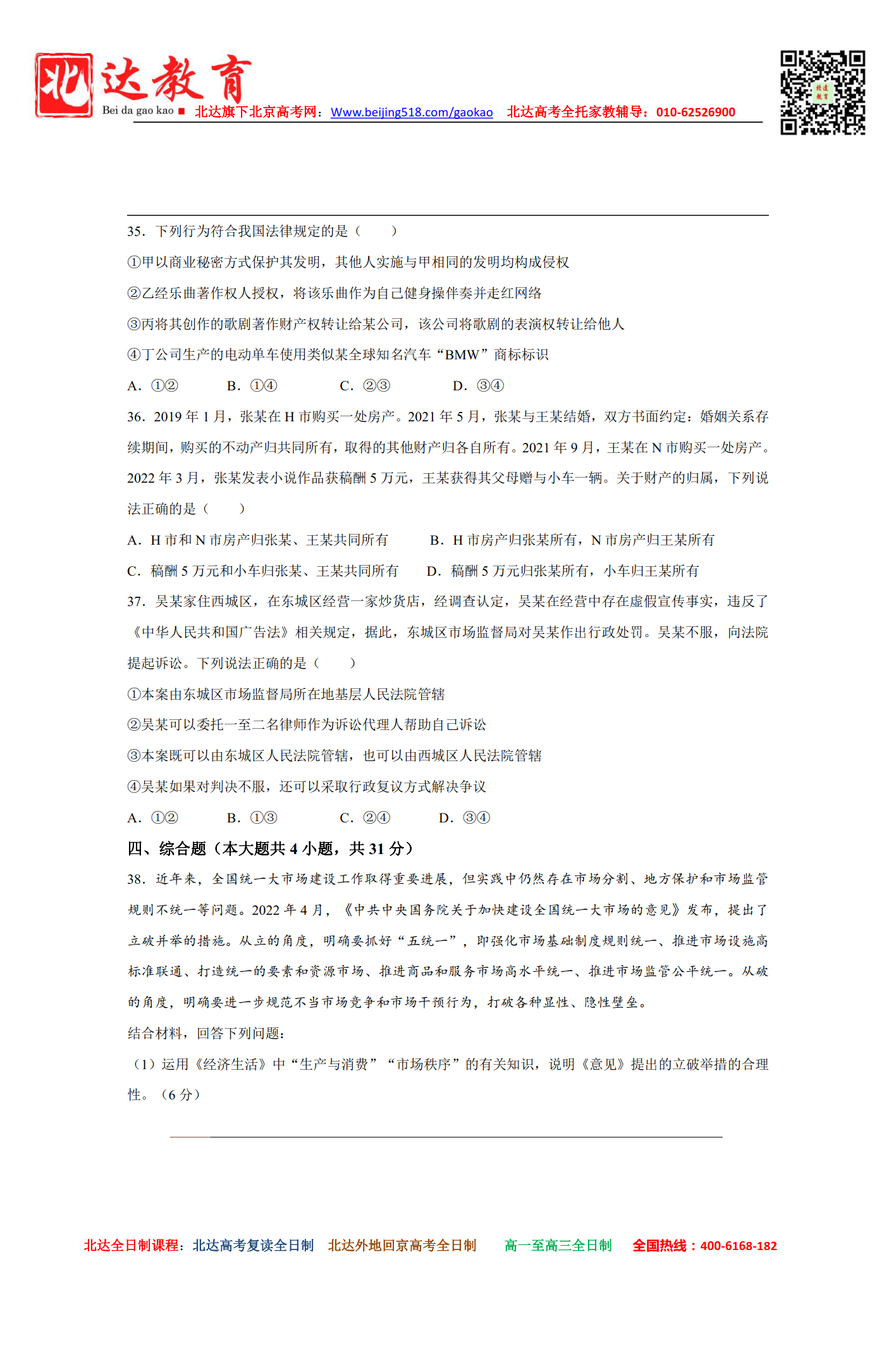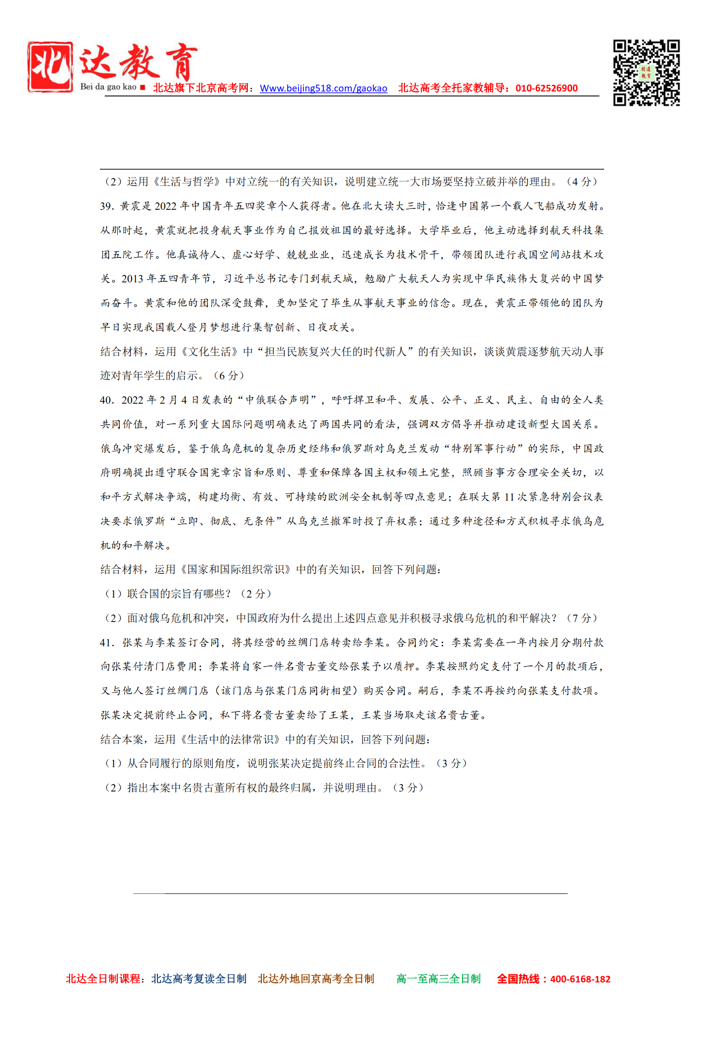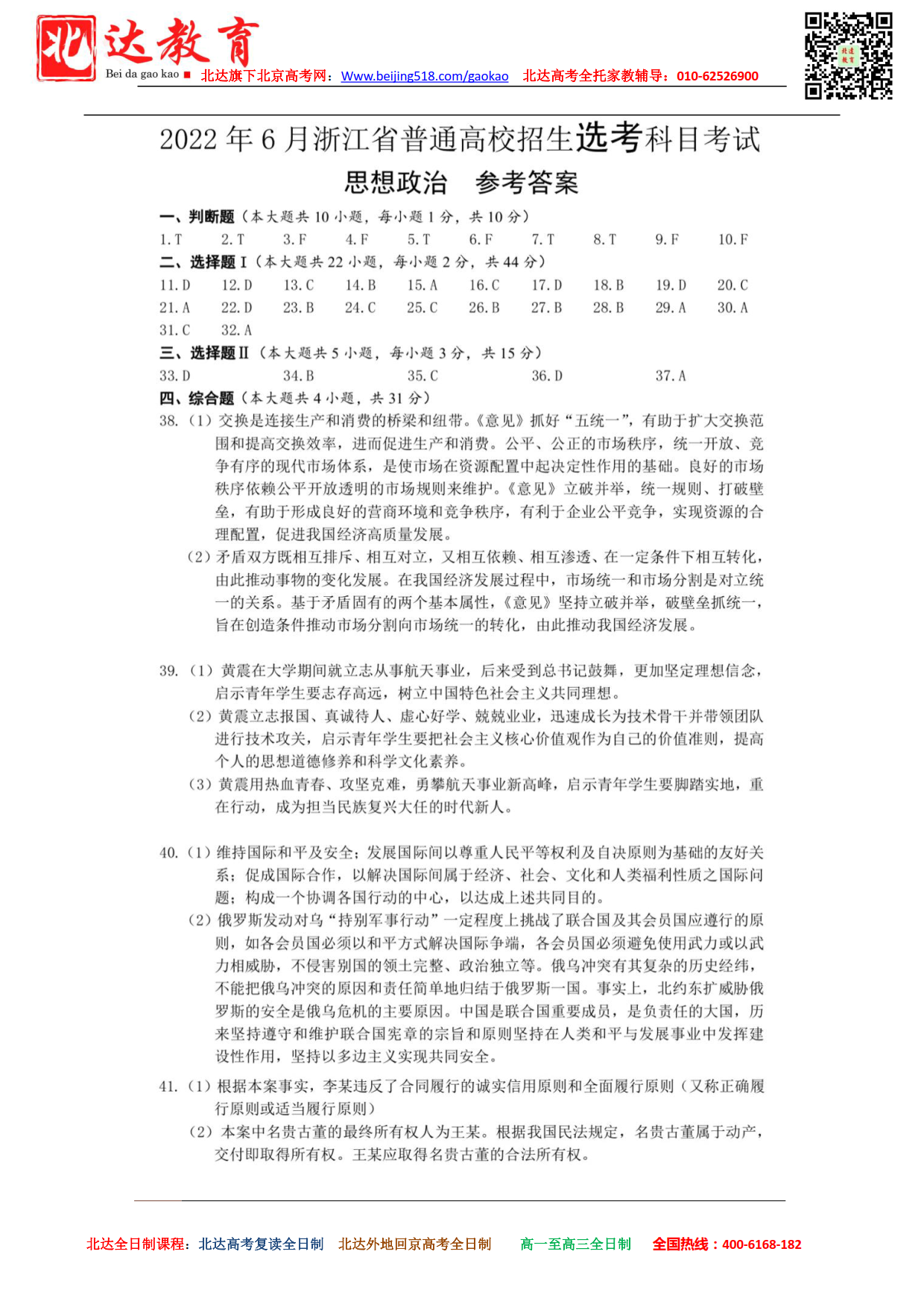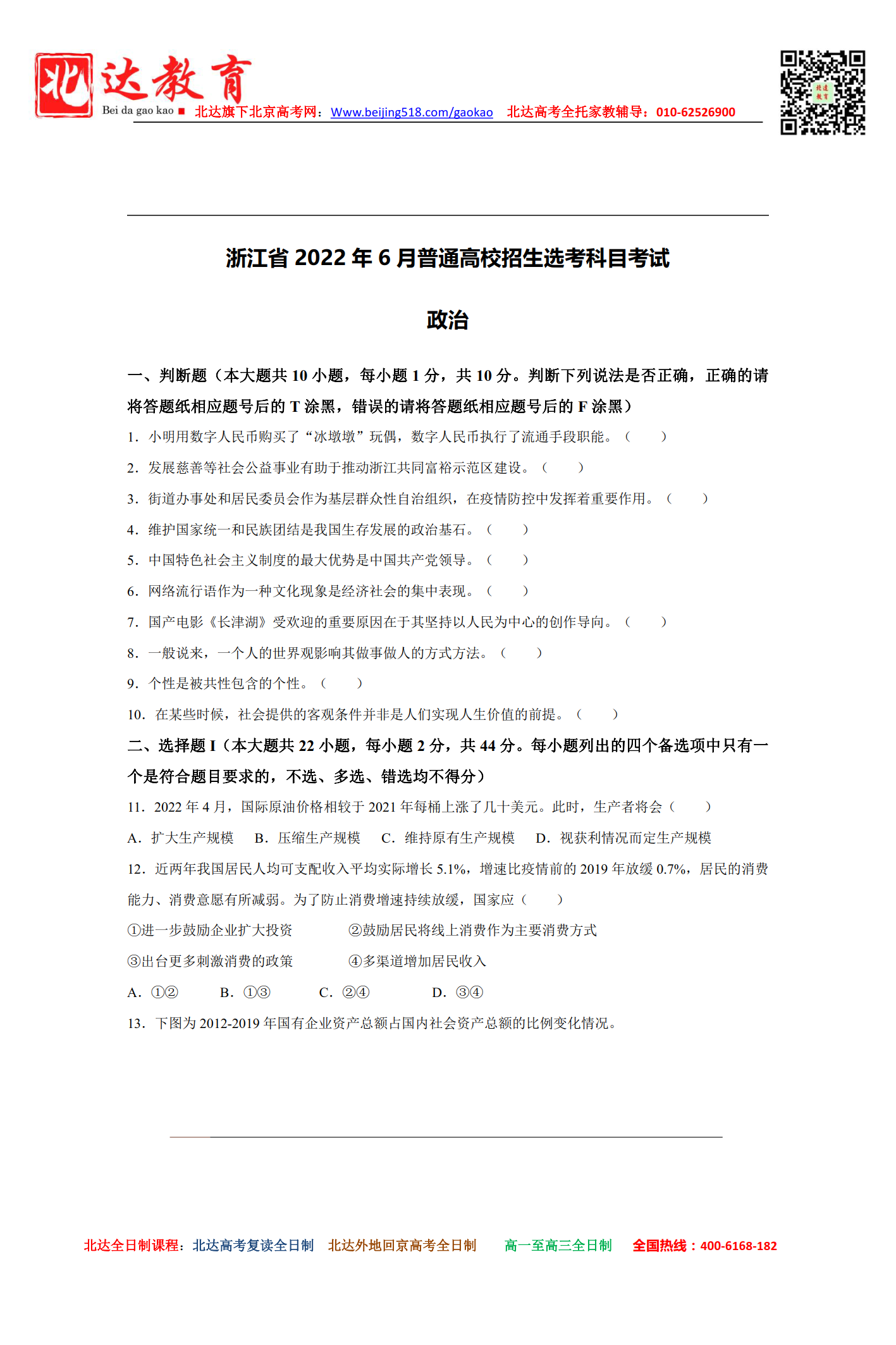 北京admw360教研组为大家整理了2022年高考(浙江卷)政治试题及答案解析,希望对大家有所帮助。