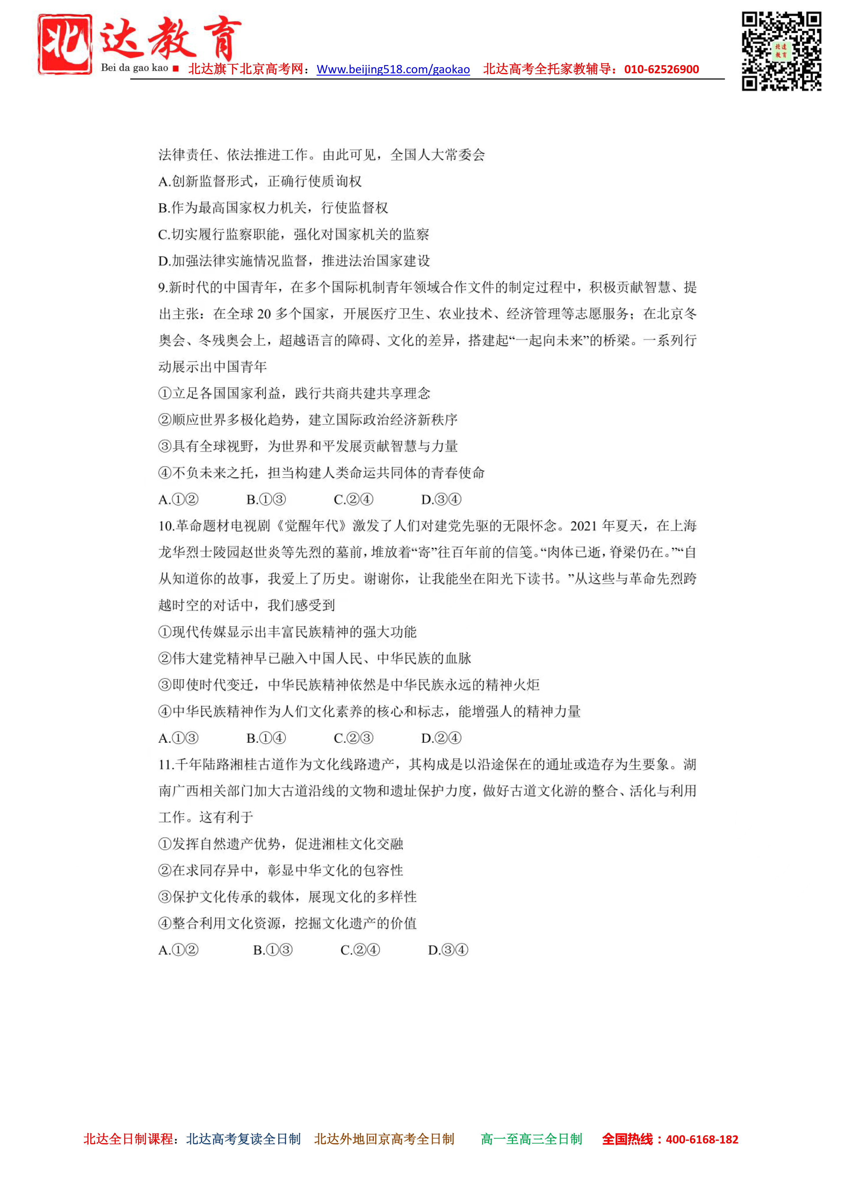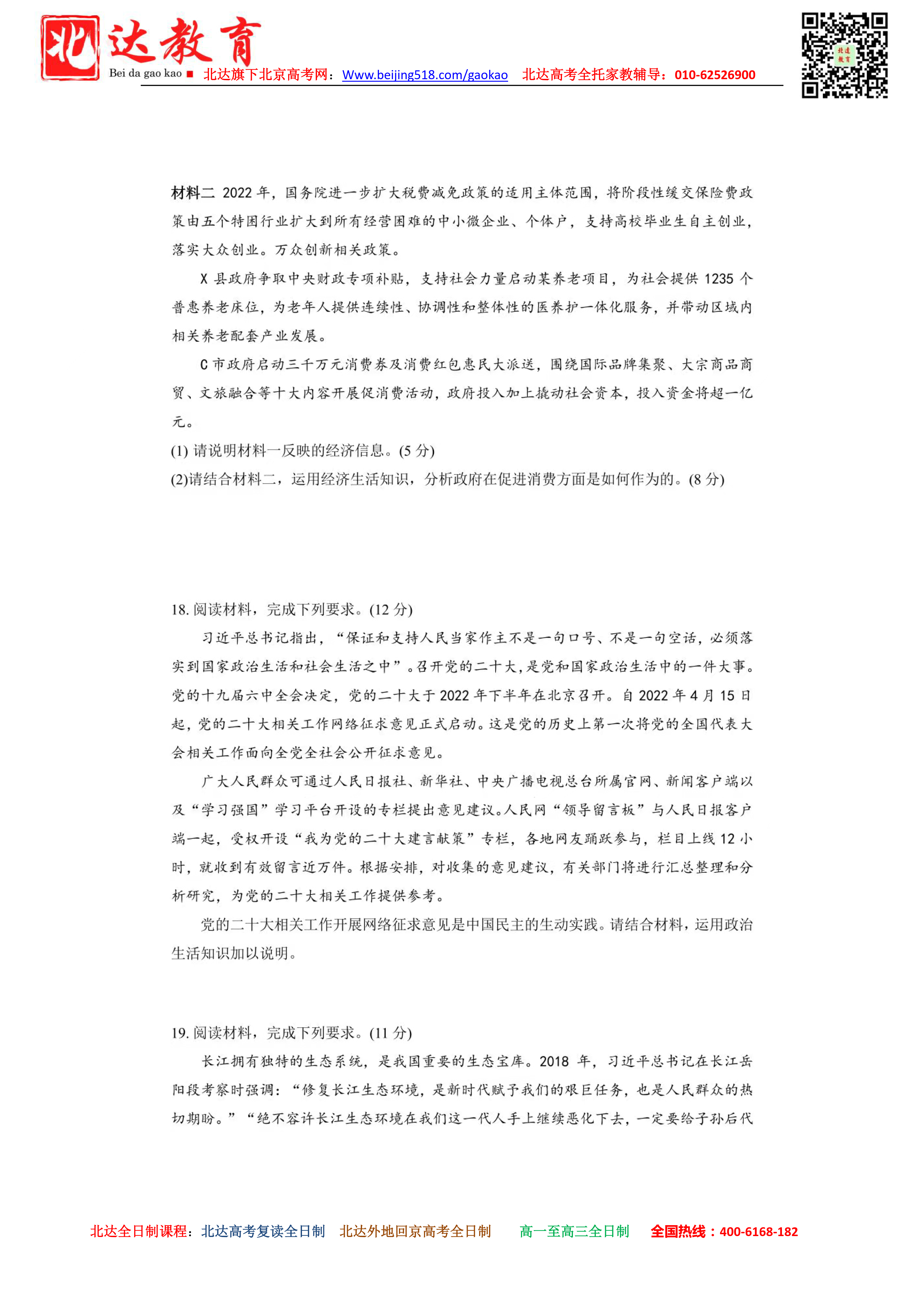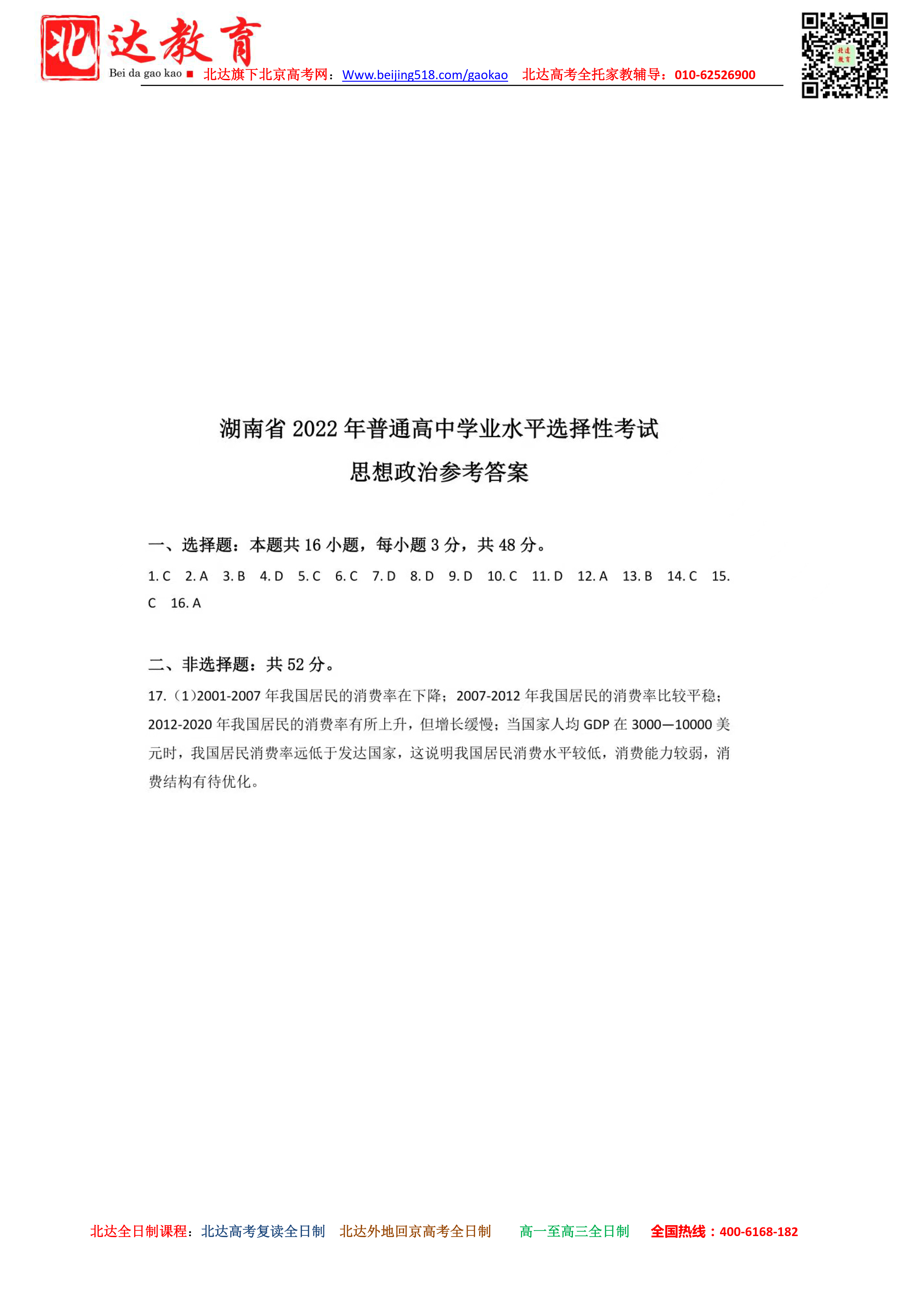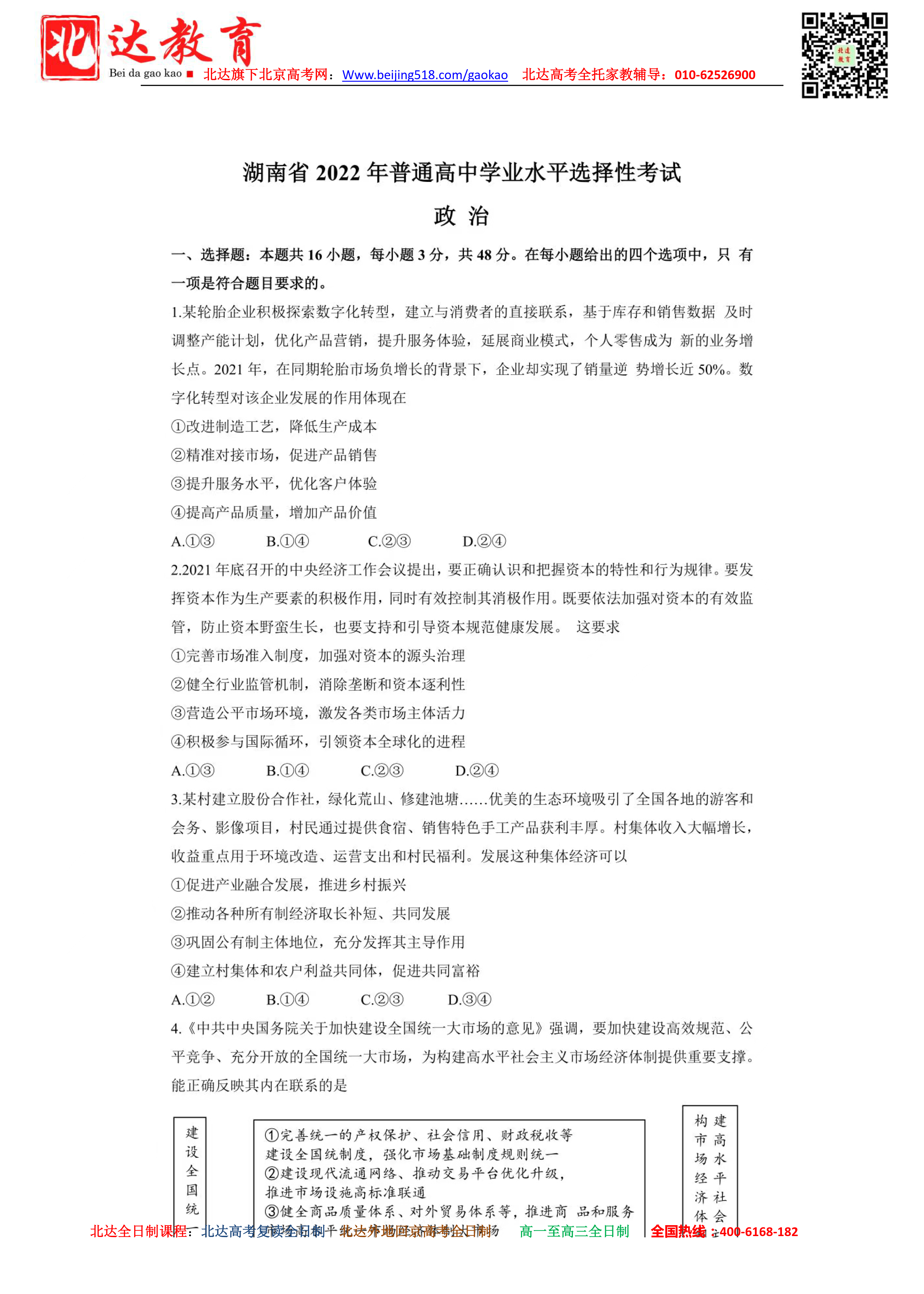 北京admw360教研组为大家整理了2022年新高考全国1卷(湖南卷)政治试题及答案,希望对大家有所帮助。