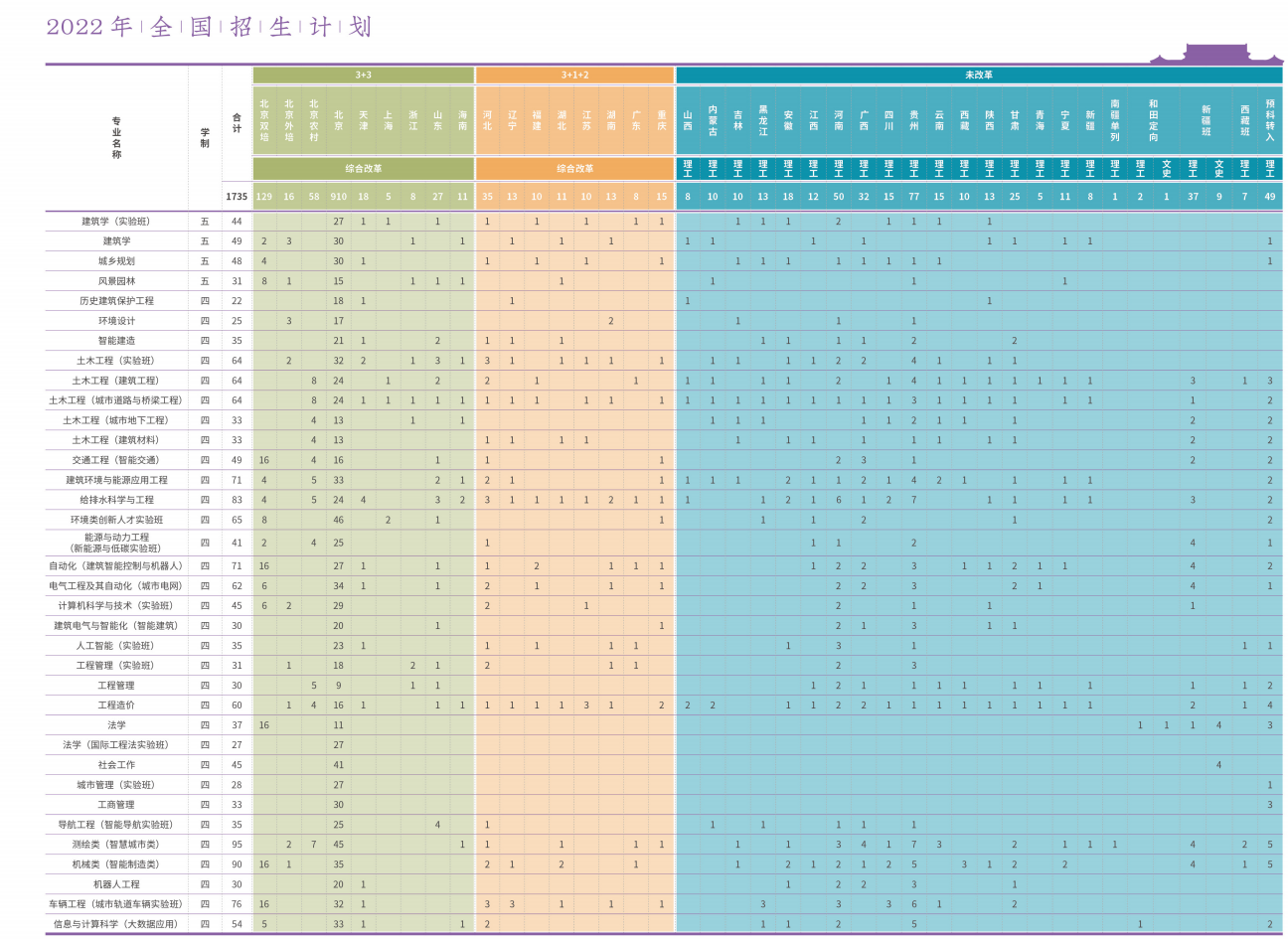 北京建筑大学2022年招生计划