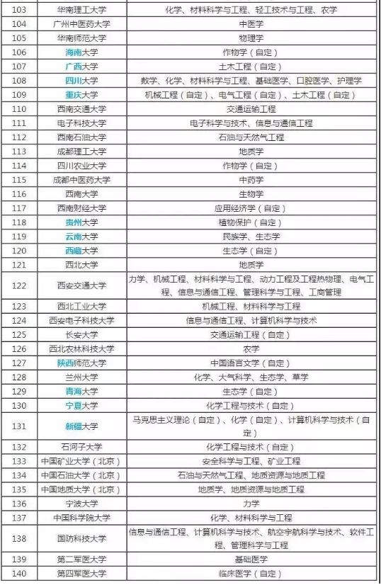 当然,42所世界一流大学都是世界一流学科建设高校,所以严格上说世界一流学科建设高校名单有140所,以下是具体名单和建设学科。