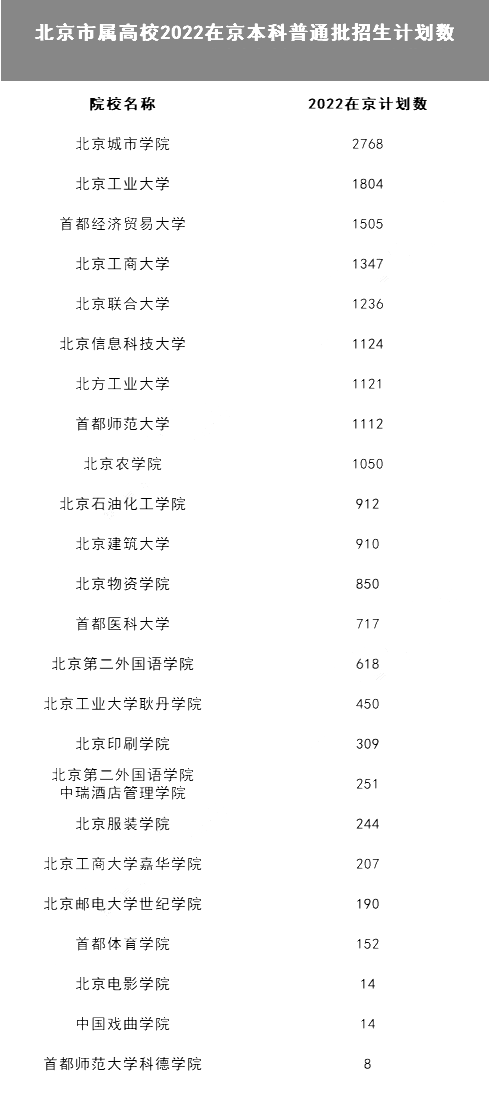近日,北京admw360教研组为大家整理了北京市属高校2022年在京本科普通批招生计划数,分享给大家。