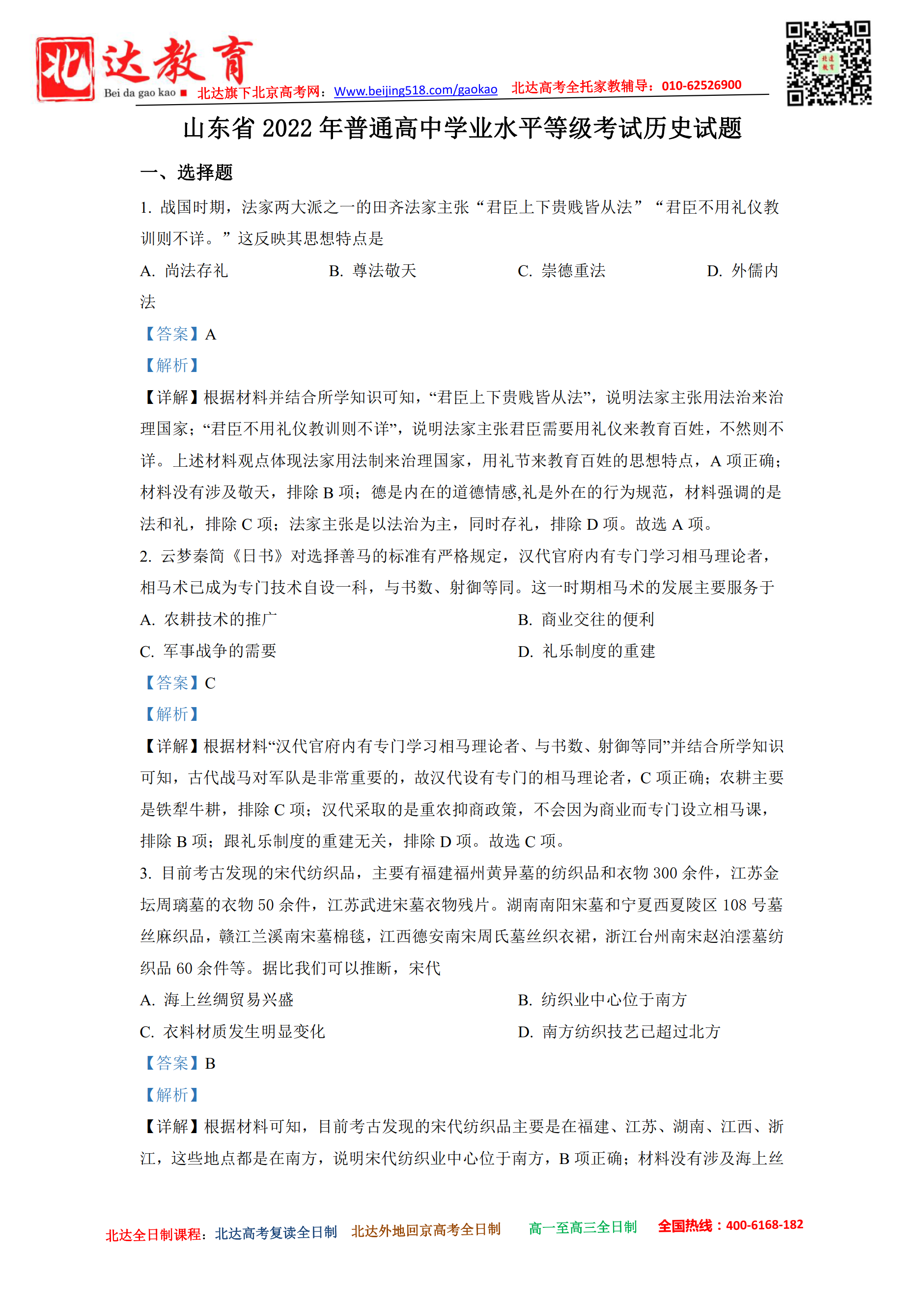 北京admw360教研组为大家整理了2022年新高考全国1卷(山东卷)历史试题及答案,希望对大家有所帮助。