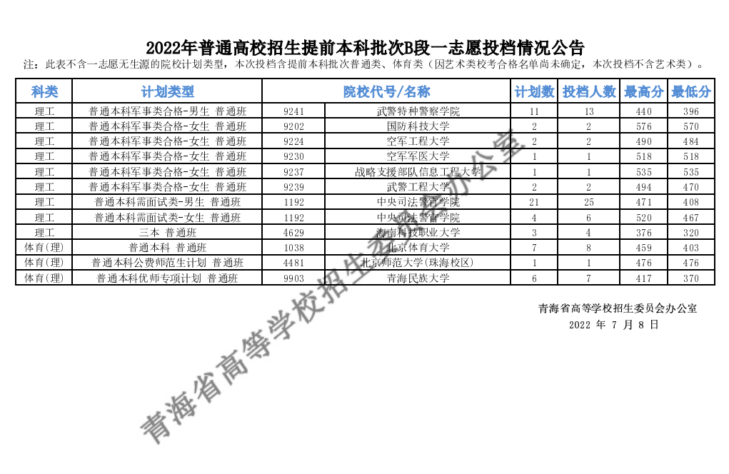 青海省2022高考本科提前批录取投档分数线发布,北京admw360教研组第一时间为大家整理了相关内容,一起来看看最低分是多少吧!
