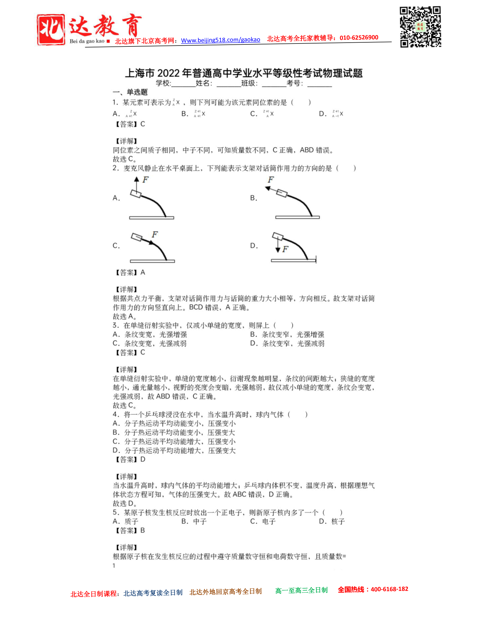 北京admw360教研组为大家整理了2022年高考(上海卷)物理试题及答案解析,希望对大家有所帮助。 admw360高考复读、高考外地回京全日制招生通知 ★2022高考复读全日制,应届生全日制,外地回…