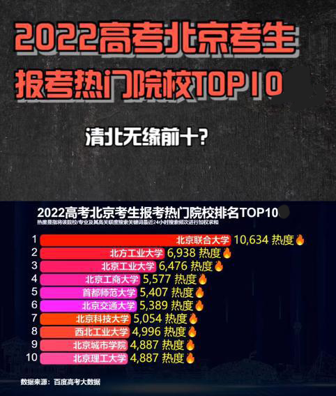首页 高考资讯 2022北京考生报考热门院校TOP10公布,清北竟无缘前十!