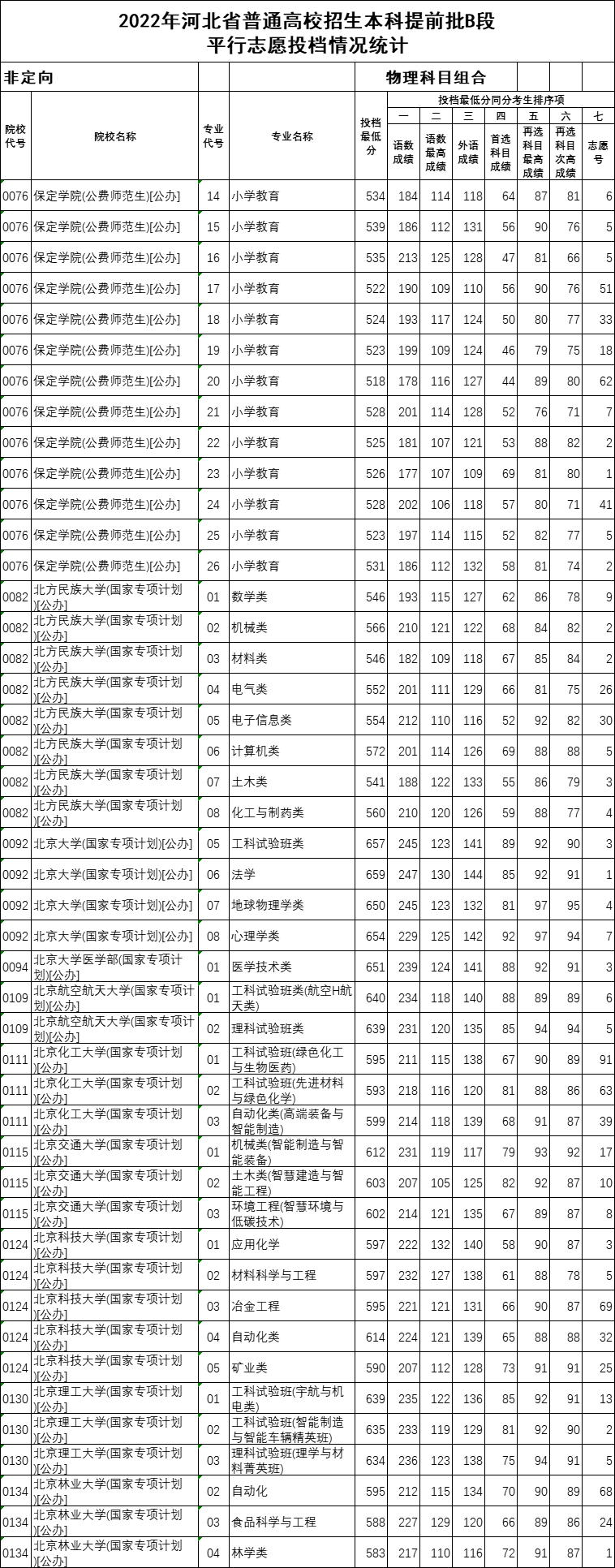 2022年河北高考本科提前批B段平行志愿投档分数线(物理组)