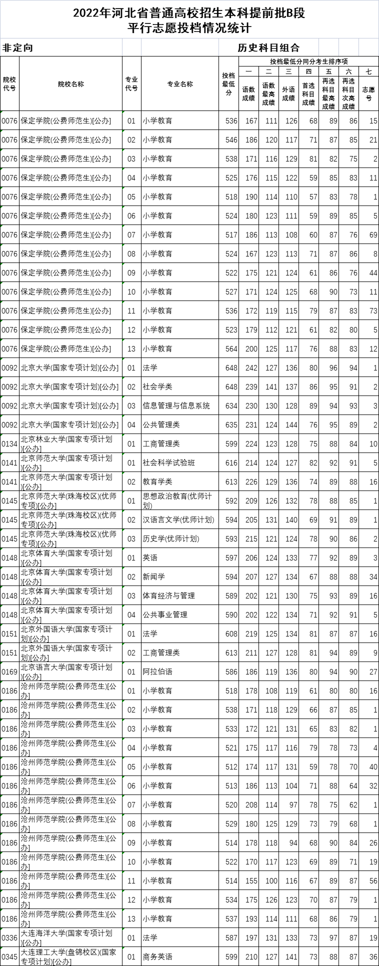 2022年河北高考本科提前批B段平行志愿投档分数线(历史组)
