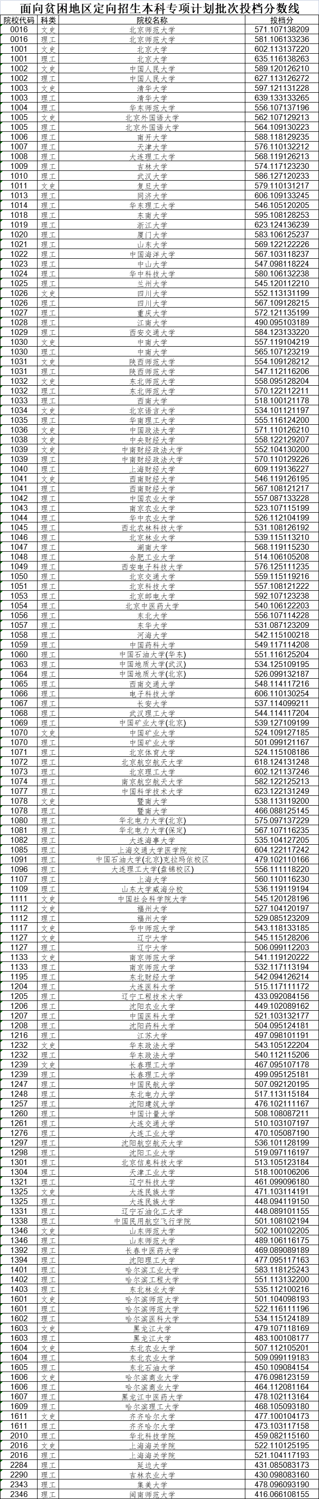 立即下载:2022年黑龙江高考面向贫困地区定向招生本科专项计划批次投档线