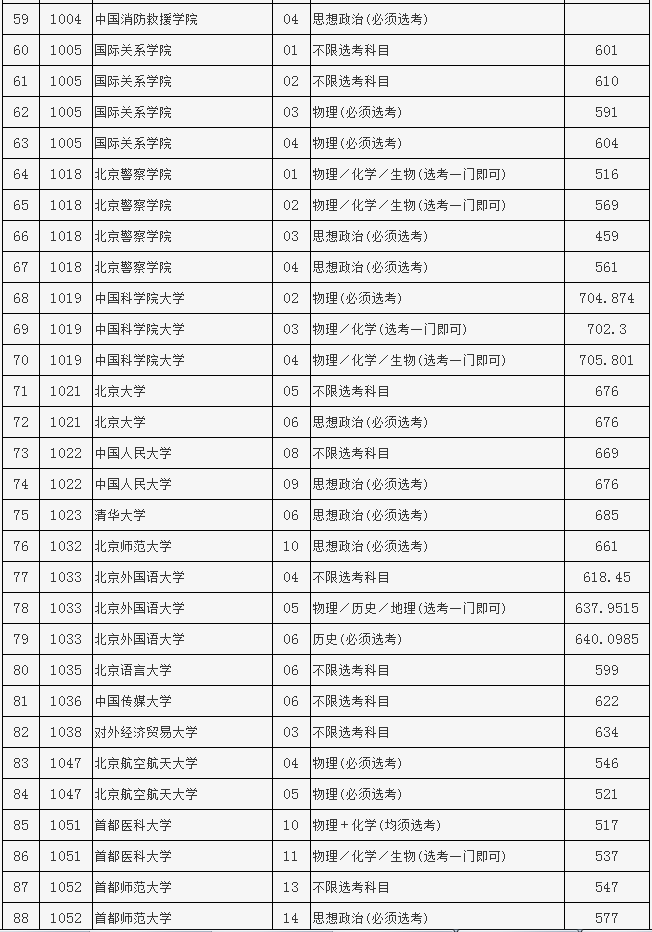 北京市2022高考各批次院校在京录取投档分数线汇总