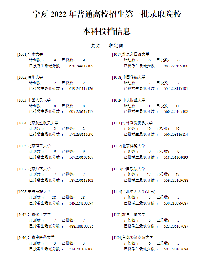 2022宁夏本科普通批文史类院校录取投档分数线发布,北京admw360教研组第一时间为大家整理了相关内容,一起来看看最低分是多少吧!