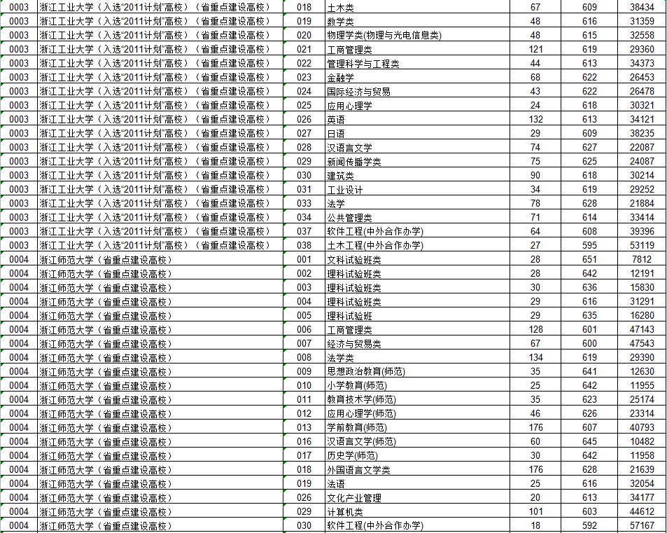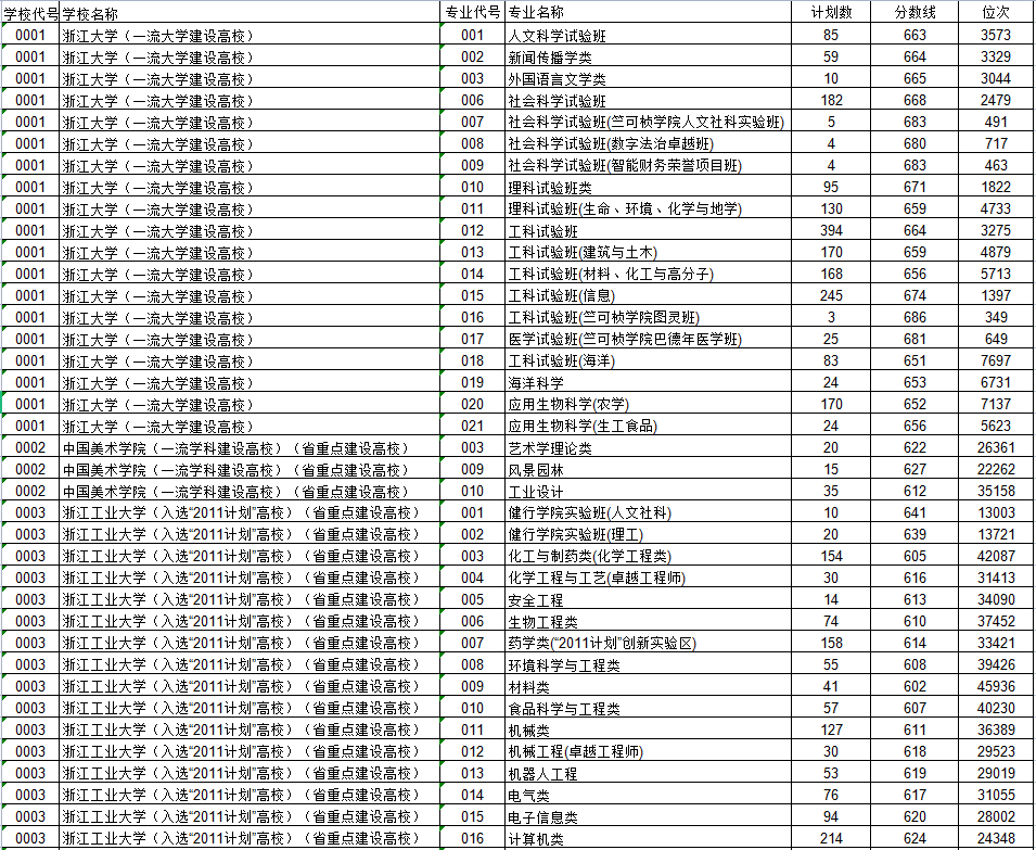 2022年浙江省普通高校招生普通类第一段平行投档分数线公布,北京admw360教研组整理了具体的分数,数据详情如下:
