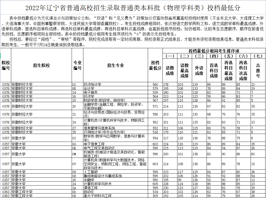 2022辽宁高招本科普通批(物理学科类)投档分数线发布,北京admw360教研组整理了具体的分数,数据详情如下: