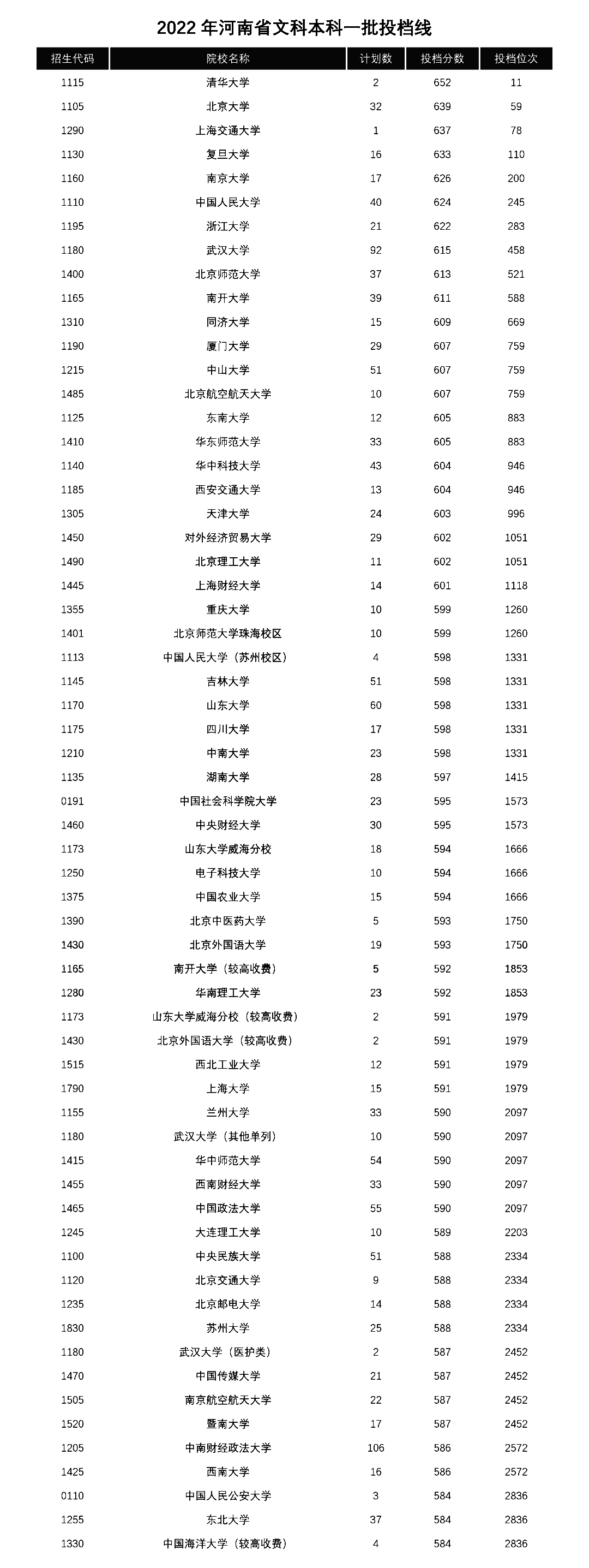 2022年河南省高考本科一批录取投档分数线(文科)发布,北京admw360教研组整理了具体的分数,数据详情如下: