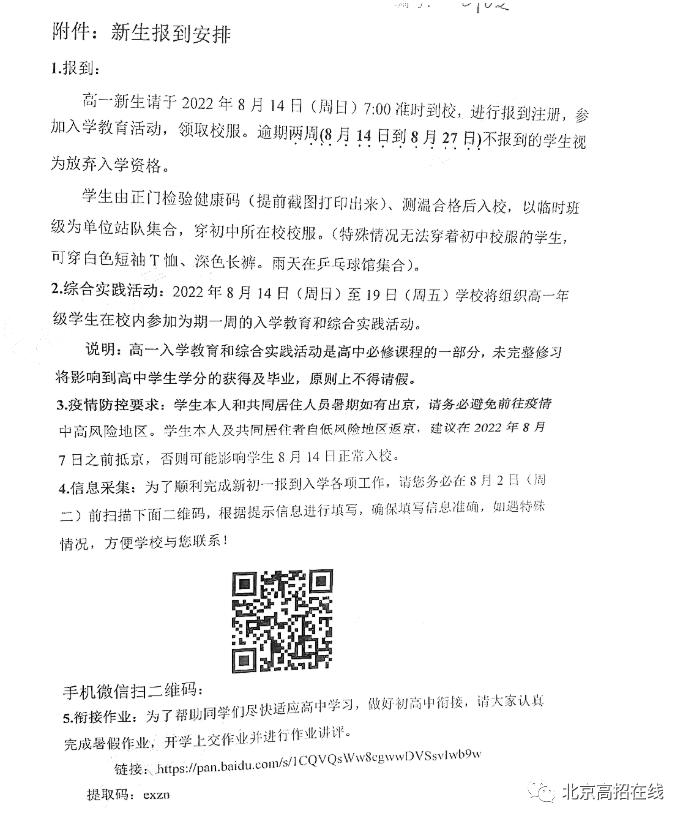 2022年北京五中新高一入学安排出炉,为了方便各位同学做好开学准备,北京admw360教研组整理了北京五中新高一入学安排,一起看下。