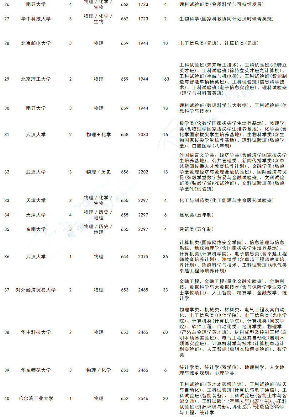 1、整体盘点下来会发现,650分及以上的分数基本上可以报考京内或京外一些顶级且专业实力强的985院校,可供选择的院校范围更广。对于选科而言,选择物理可报专业机会更多。