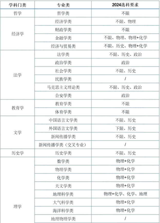 2024年选科要求变化表现为:建筑类、设计学类、外国语言文学类、新闻传播学类、法学不限选科;经济管理试验班要求必须选考物理;其它专业都要求物理+化学均须选考!