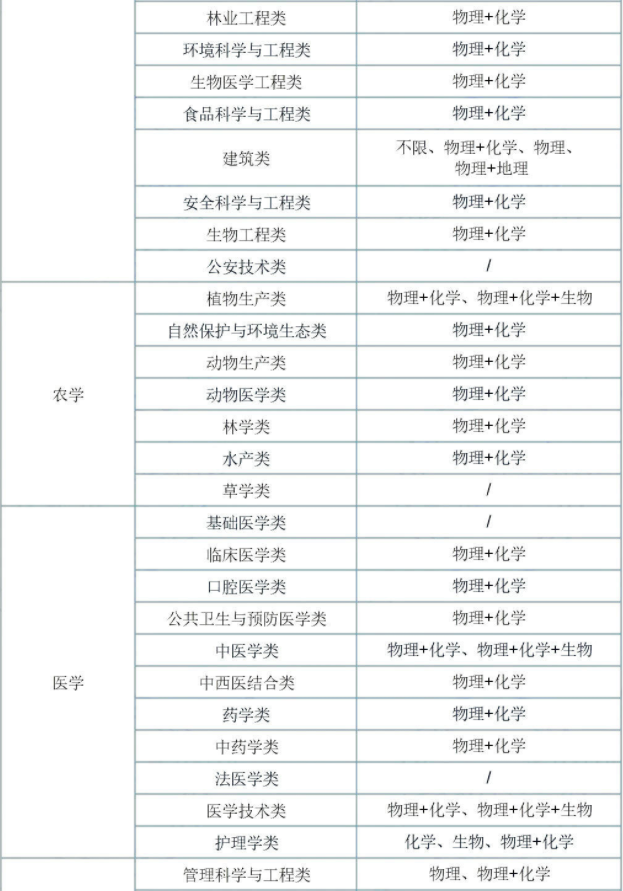 仅要求选考化学/仅要求选考生物:此类专业主要为护理学类。