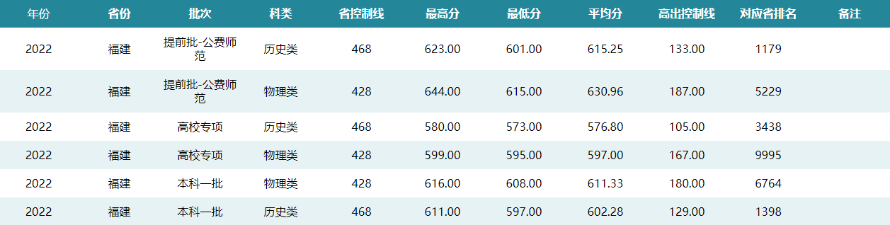华中师范大学2022年福建招生录取分数线