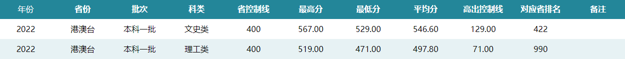 华中师范大学2022年港澳台招生录取分数线