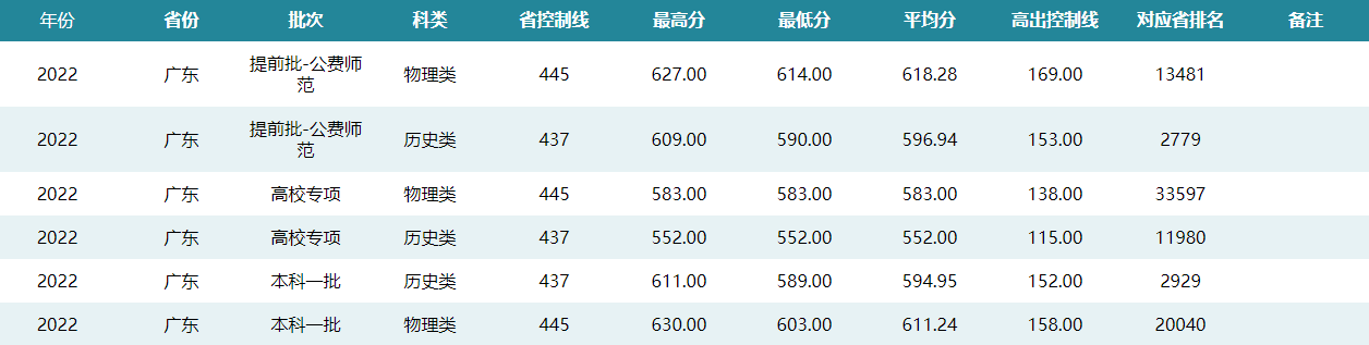 华中师范大学2022年广东招生录取分数线