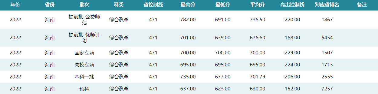 华中师范大学2022年海南招生录取分数线