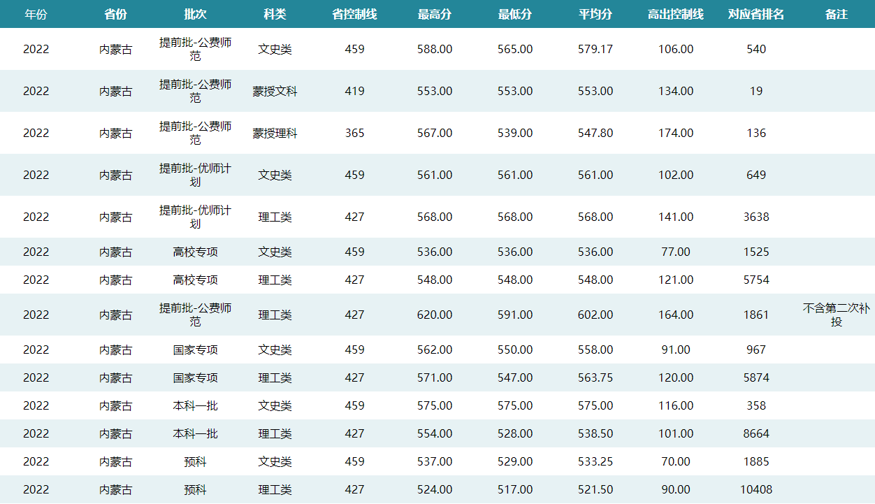 华中师范大学2022年内蒙古招生录取分数