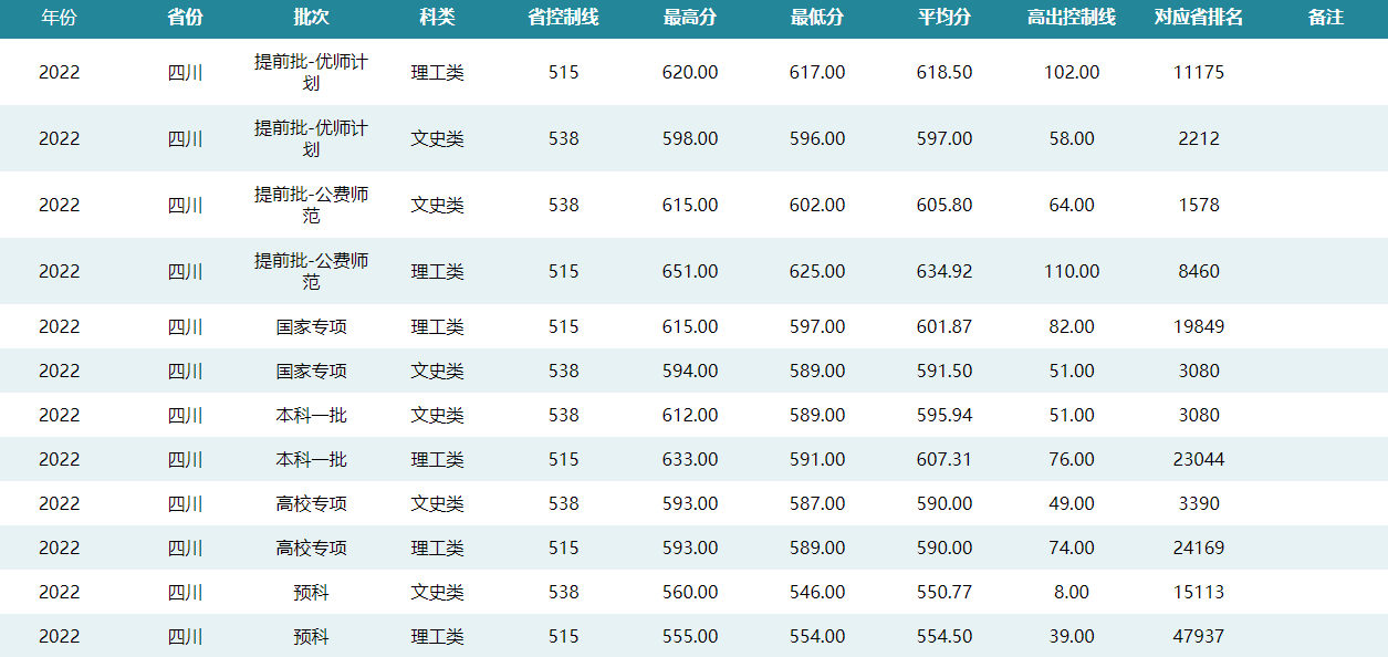 华中师范大学2022年四川招生录取分数