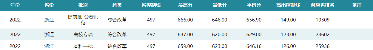 华中师范大学2022年浙江招生录取分数