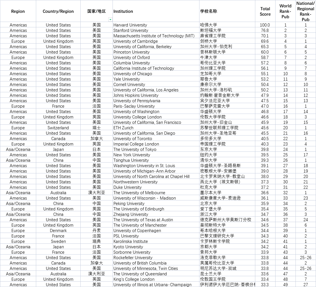内容过长,只展示部分完整版>>>2022软科世界大学学术排名
