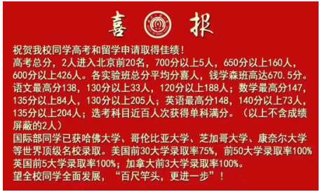 2022年101中学高考和留学申请取得佳绩!北京市前20名有2人(就是查不到成绩的那20人)。700分以上5人,650分以上160人,600分以上426人。