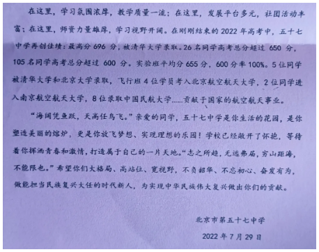 海淀区重点20中2022年高考取得佳绩!高考最高分696分,位列北京市第153名;