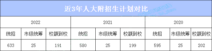 温馨提示:1、人大附近3年统招仅统计了01普通班招生计划,不包含人大附通州校区招生计划及国际班招生计划。2、人大附2022年统招计划相比2021和2020有一定扩招,所以统招计划增多可能是影响人大附区排名降低的一个因素。