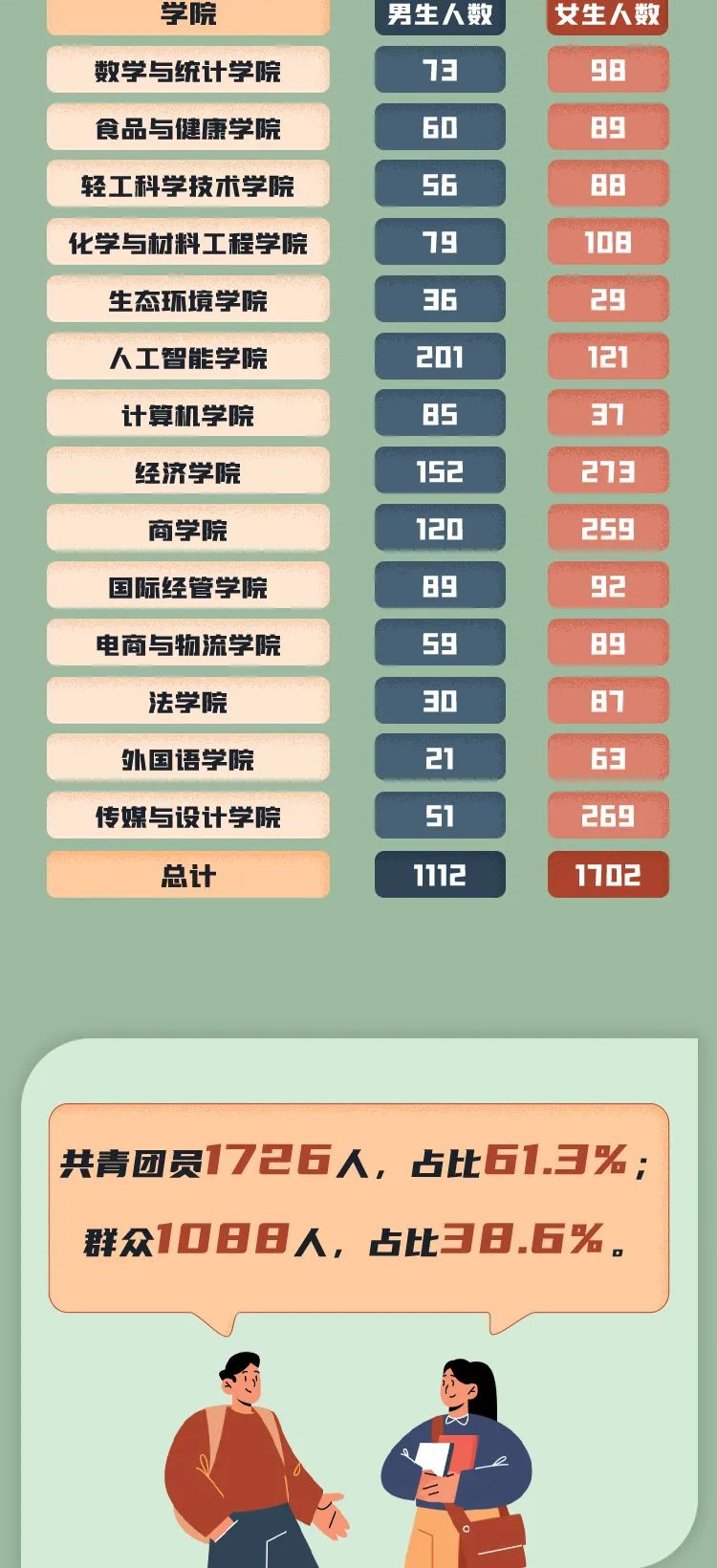 又到一年迎新季,今年北工商又迎来了2814个崭新的面孔,TA们来自哪些中学?男女比例是怎样的?各学院分布情况如何?重名的萌新们又有哪些?