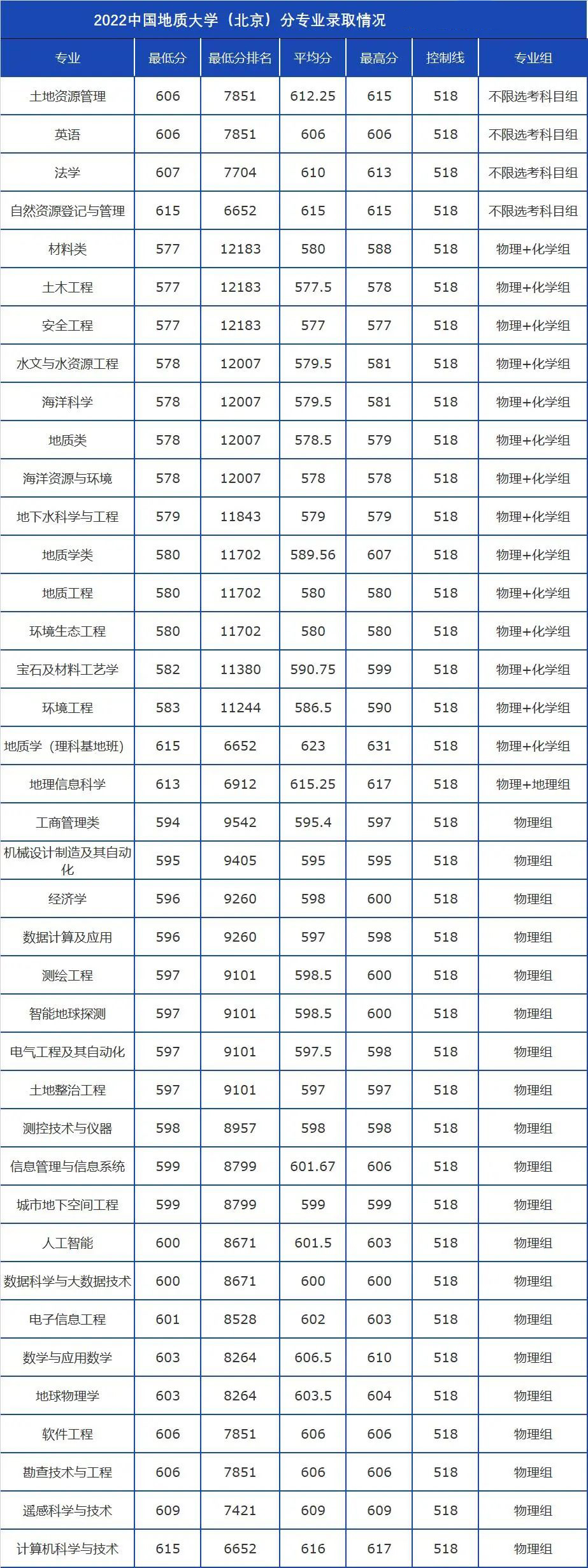 近日,中国地质大学(北京)发布了2022年在京招生各专业的录取分数线,北京admw360教研组为大家整理了内容详情,供大家参考: