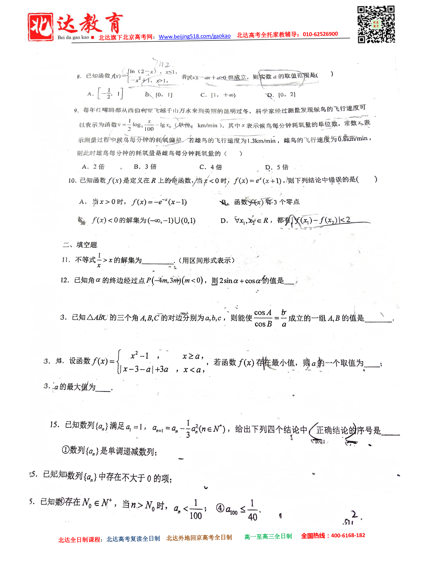 北京高考备考资料下载网入口>>>>>>>>>(点此进入)名校试题-–试卷解析—最新试题—考点汇总—知识点讲解