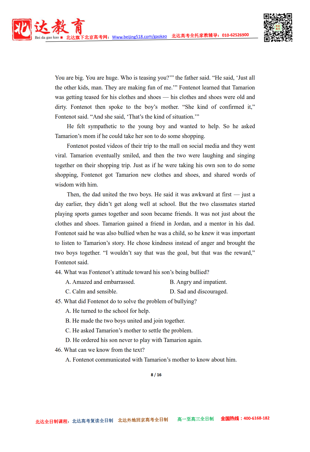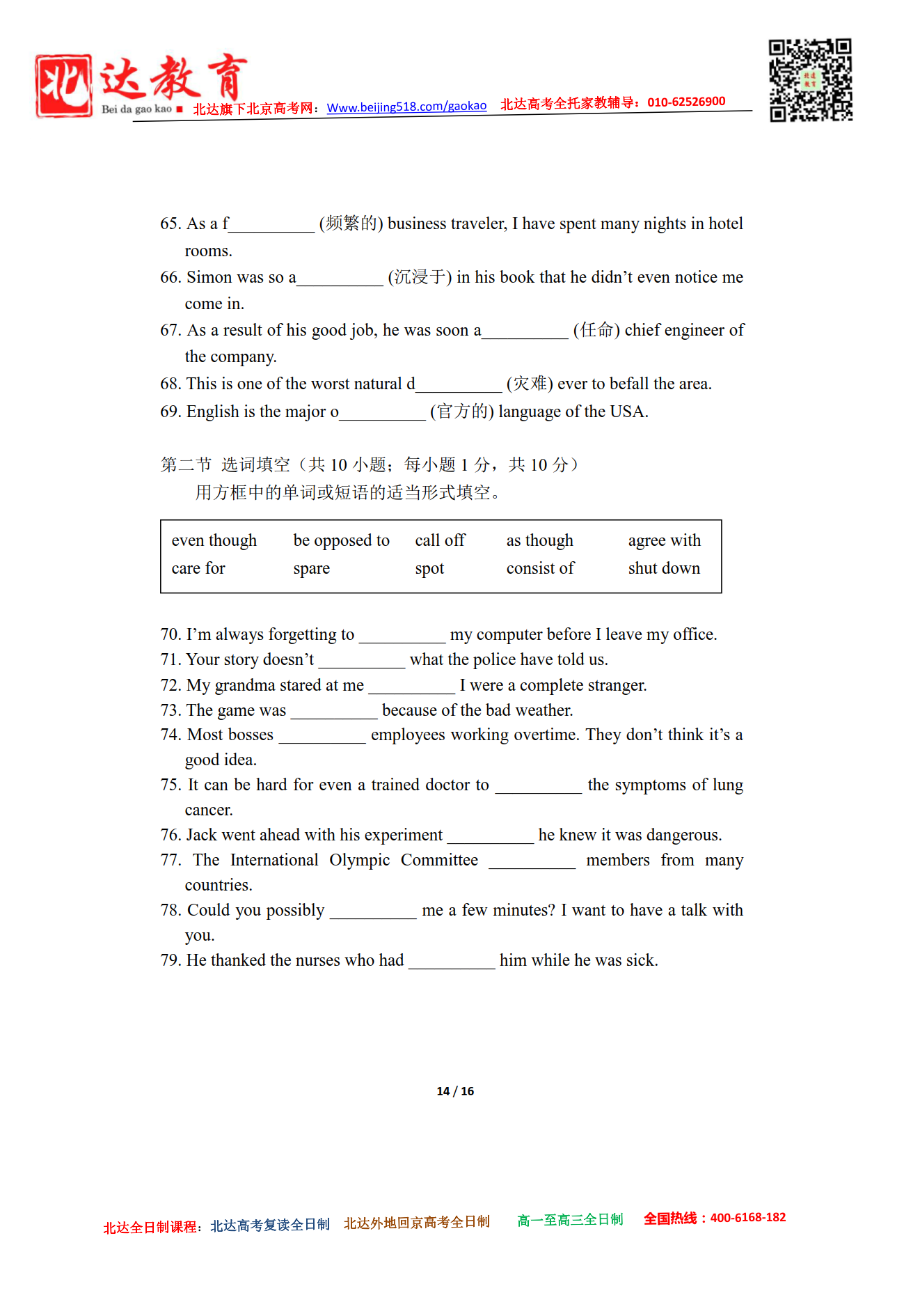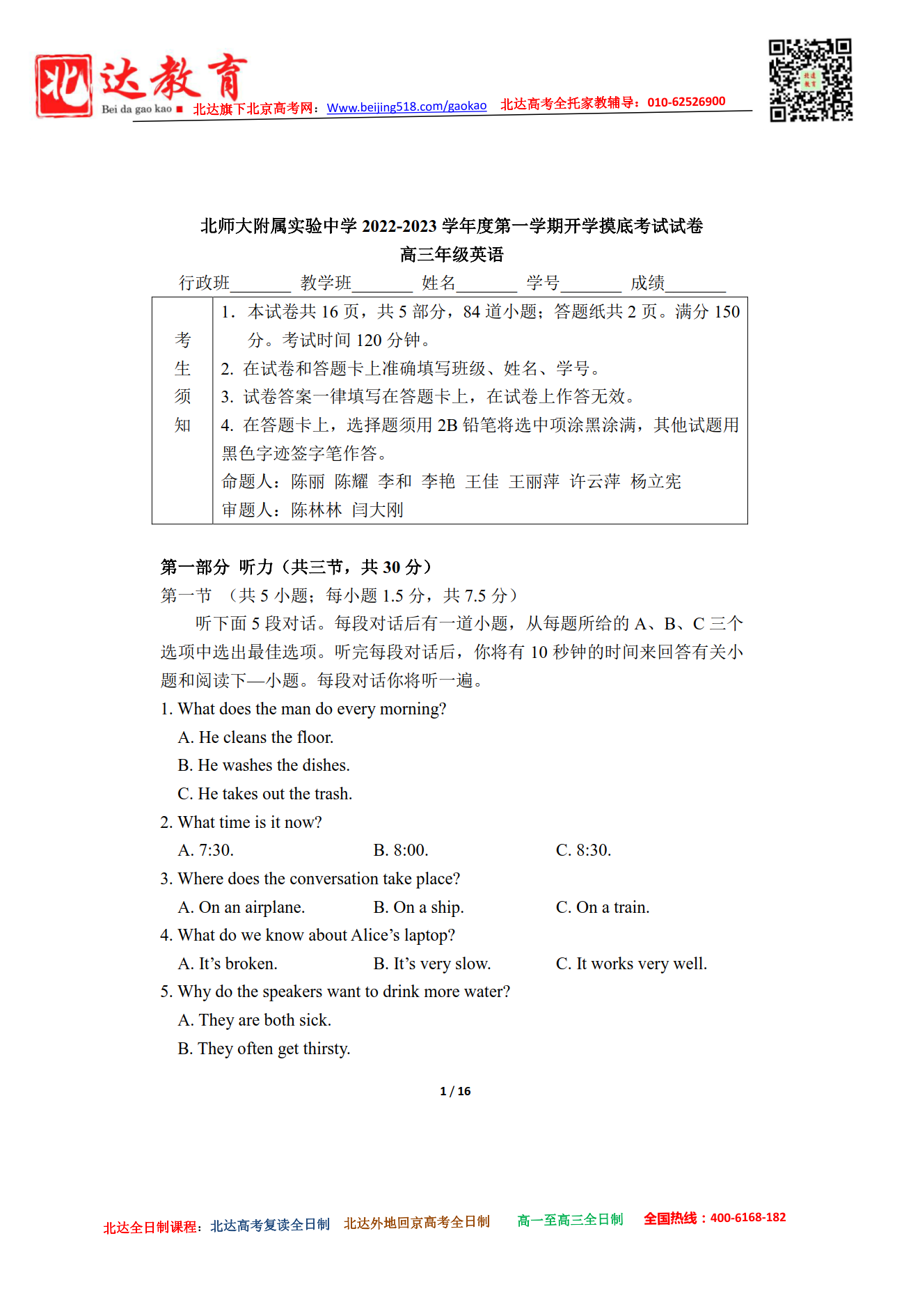 北京admw360教研组为大家整理了2022-2023北京北师大实验中学高三上学期开学摸底考英语试题,一起来做做看吧。