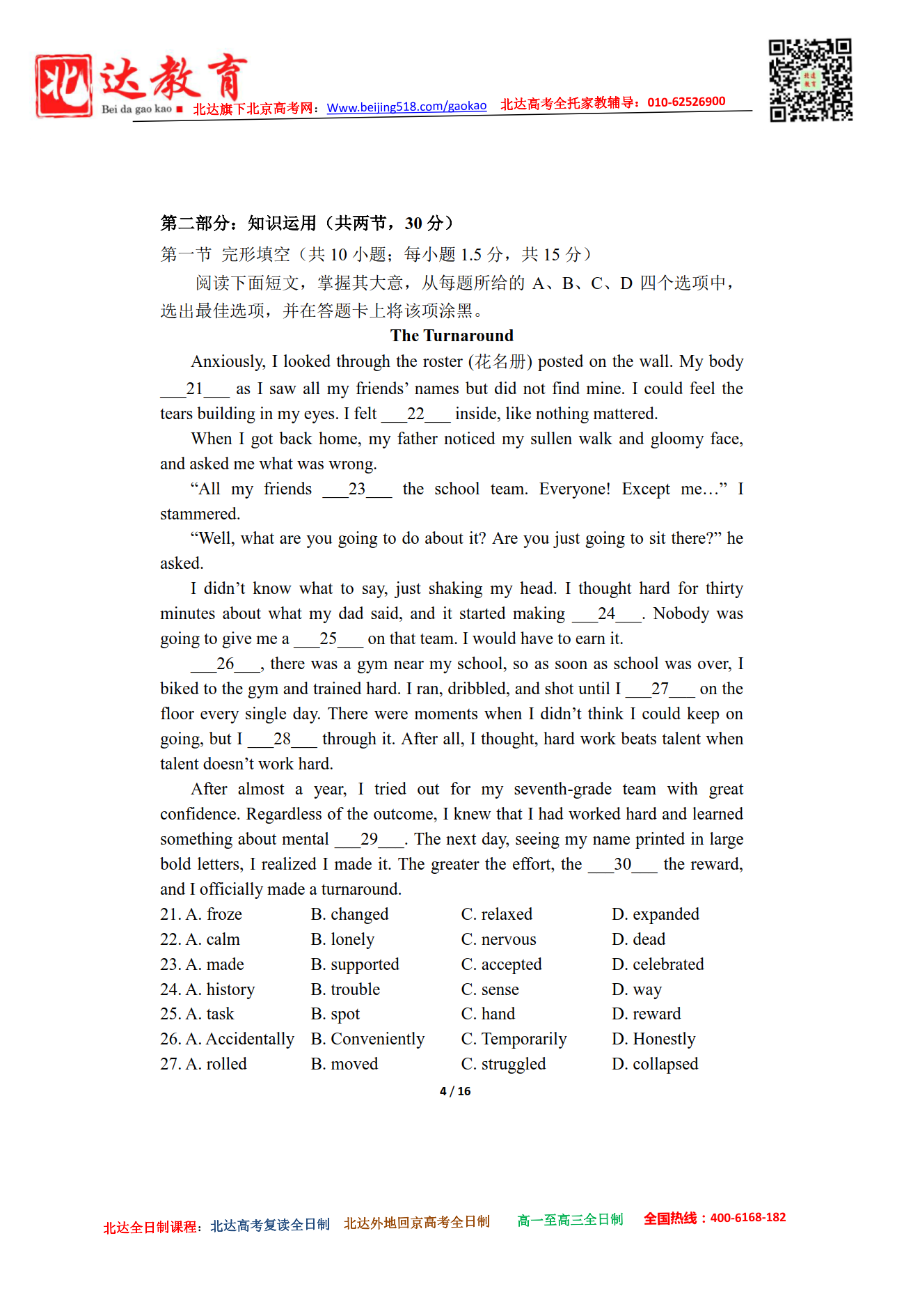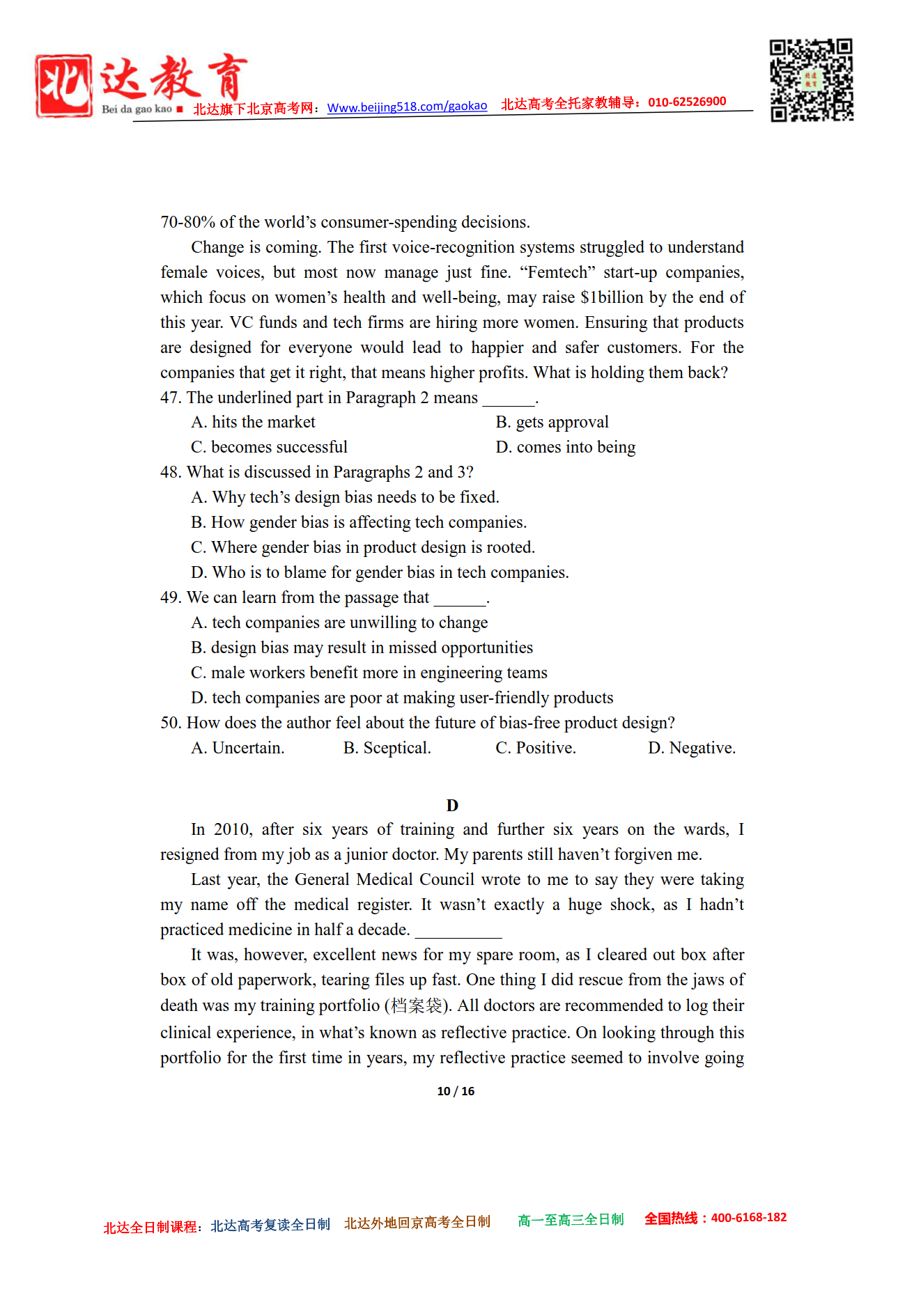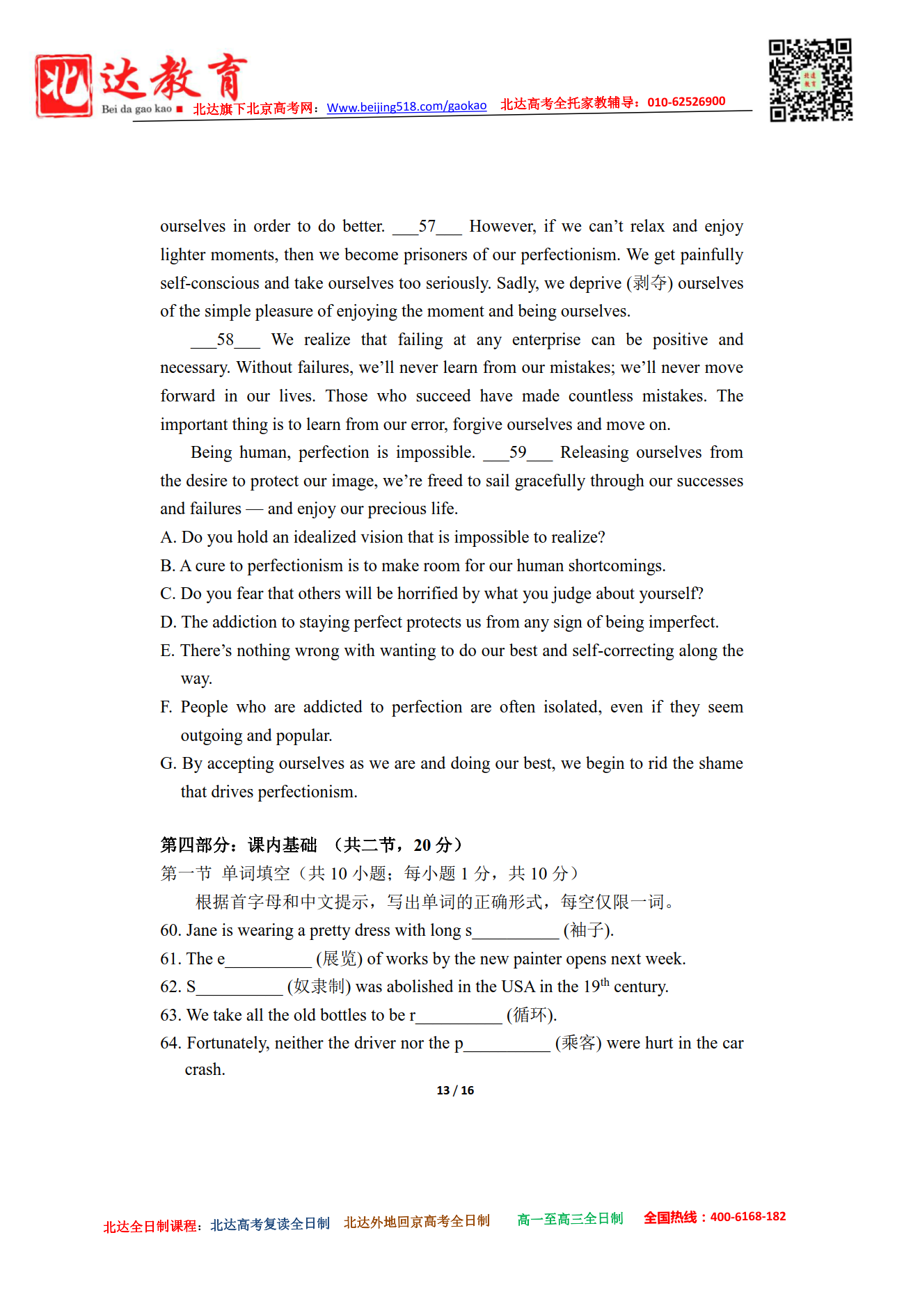 北京admw360教研组为大家整理了2022-2023北京北师大实验中学高三上学期开学摸底考英语试题,一起来做做看吧。