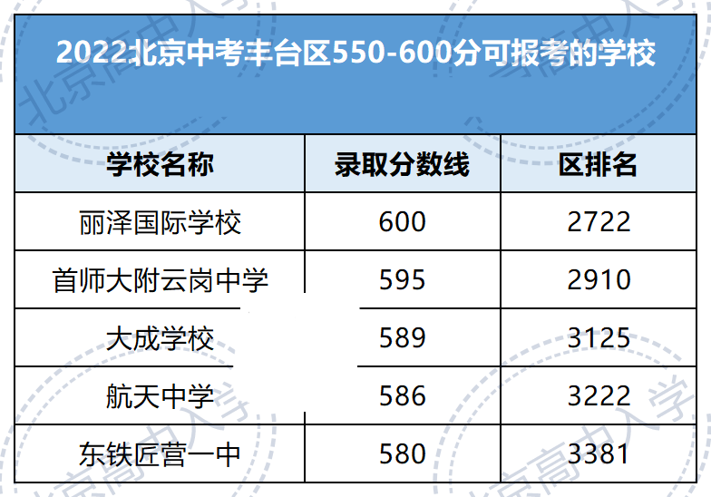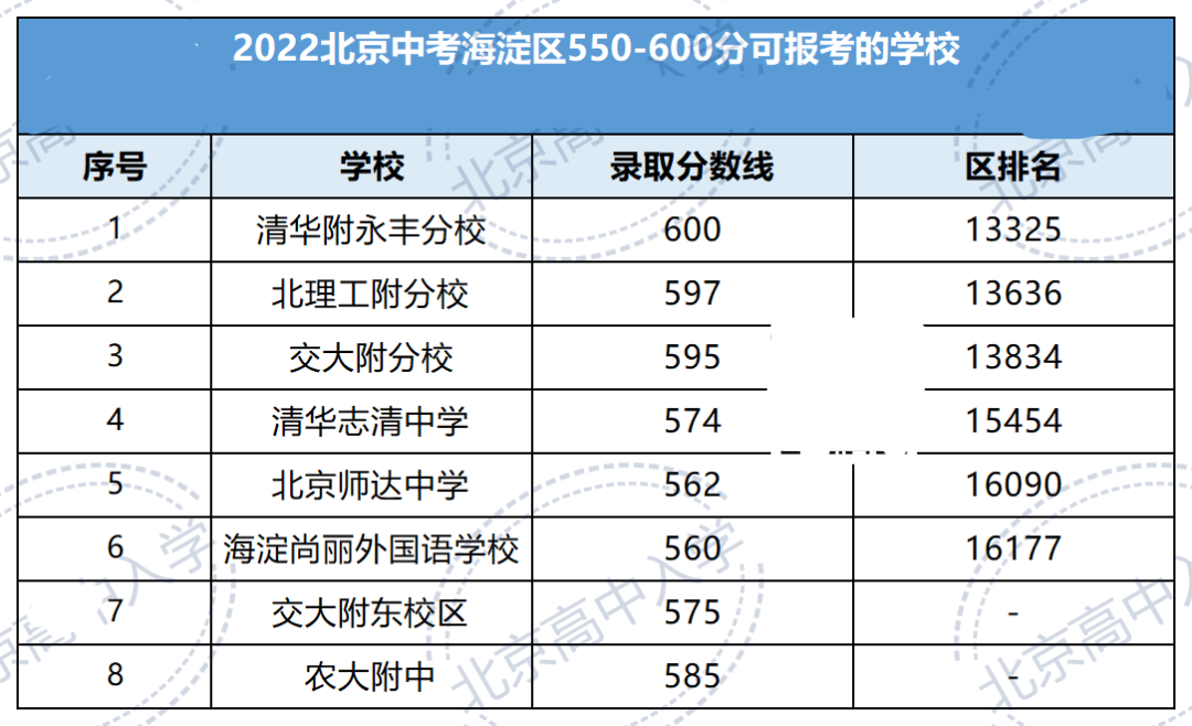 2022北京东城、西城、海淀、朝阳、丰台地区550-600分之间的考生去向如何?北京admw360教研组整理了2022年中考成绩550-600分的考生可以报考的学校!今年北京中考录取分数线多少?2023考生可参考!