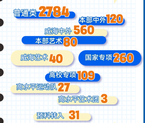 北京交通大学2022年共录取新生4164人,其中校本部中外专业120人,威海校区600人。普通类招生2784人,占比66.9%,本部中外专业招生120人,威海中外专业招生560人,本部艺术专业80人,威海艺术专业40人,国家专项260人,高校专项109人,高水平运动队27人,高水平艺术团3人,预科转入31人。