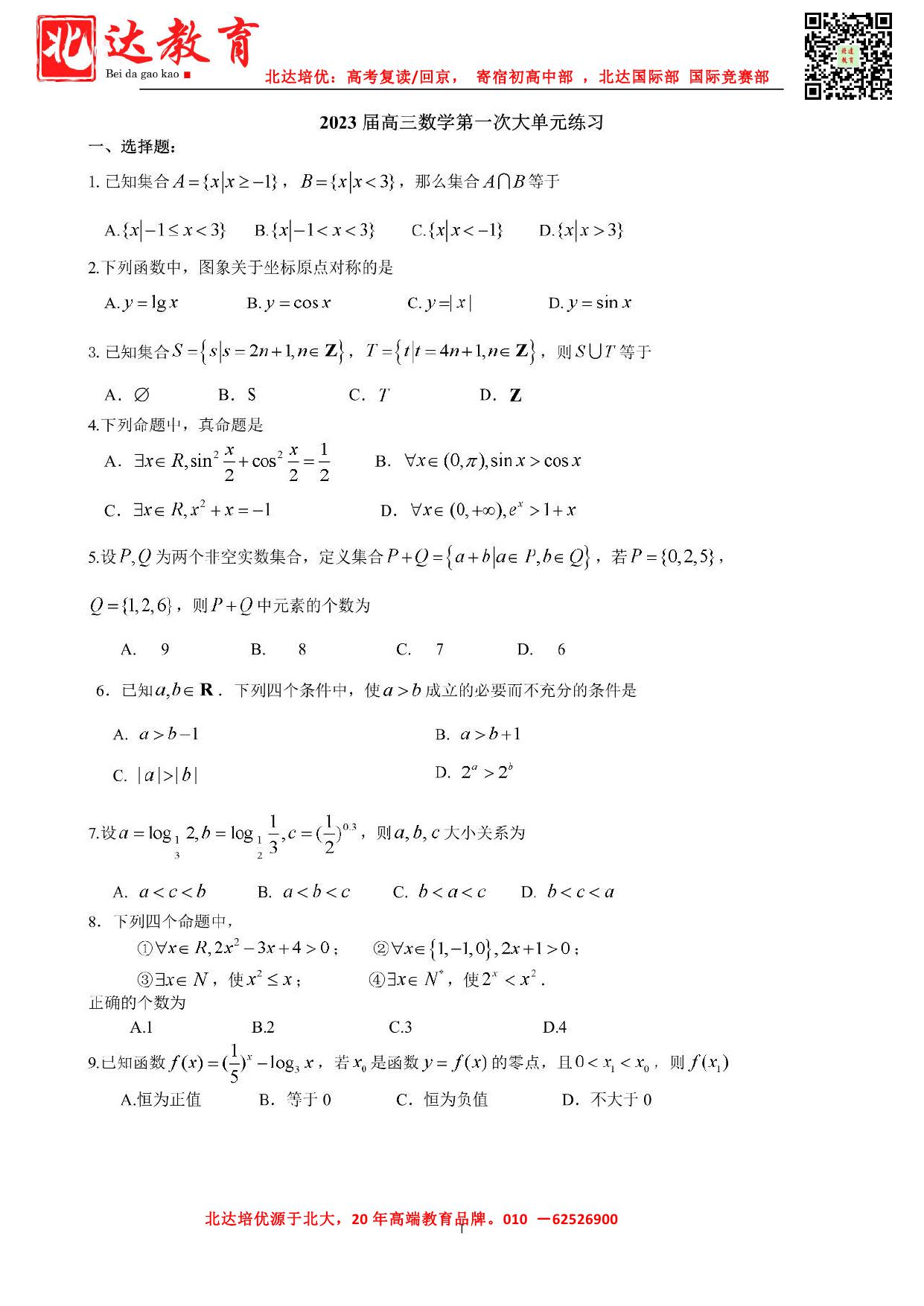 今天,北京admw360教研组为大家整理了2022年北师大附属实验中学高三9月月考数学试题及答案,一起来看。