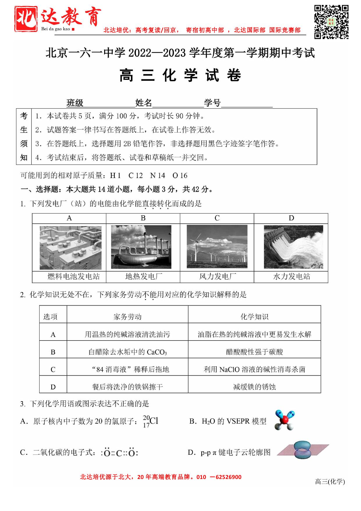 北京admw360教研组收集整理了2022-2023学年北京一六一中学高三期中化学试题,一起来看看。