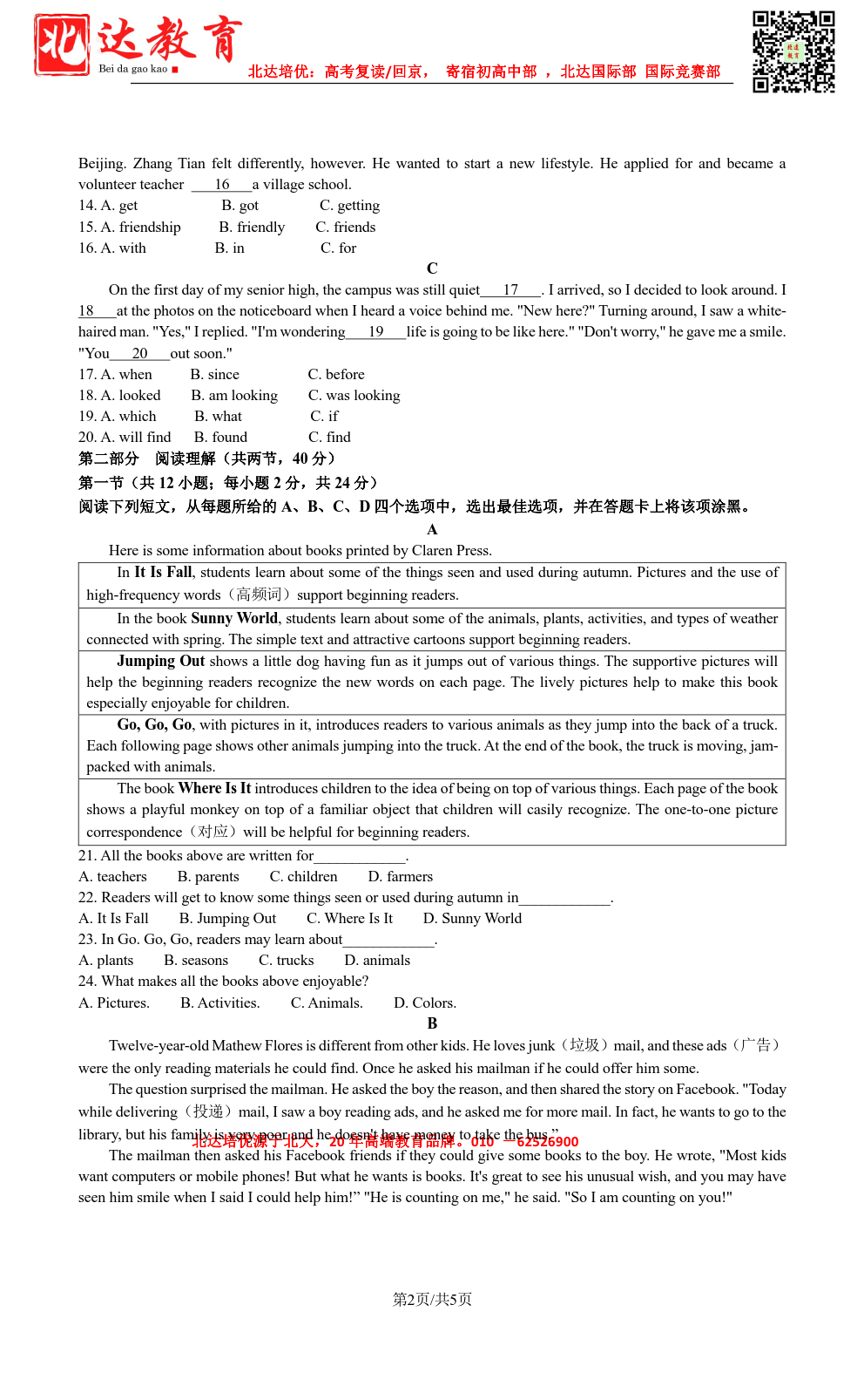 北京admw360教研组为大家整理了2022-2023学年北京丰台区高一(上)期中英语B卷试,分享给大家,赶紧下载练习起来吧。