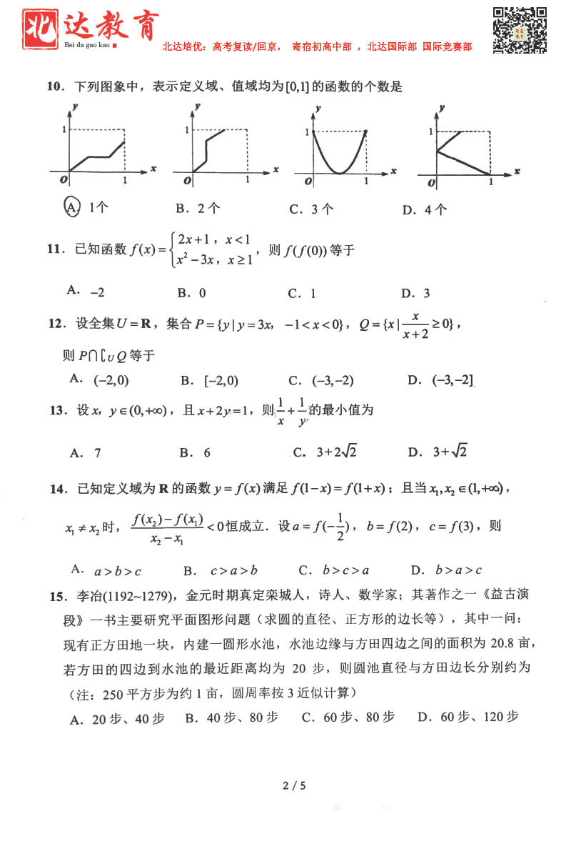 下载链接:北京各区2022-2023学年高一第一学期期中考试试题及答案汇总
