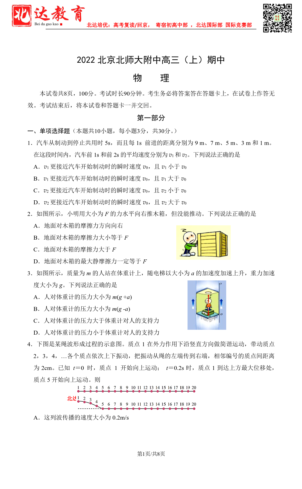北京admw360教研组为大家整理了2023届北师大二附中高三(上)物理期中试题,分享给大家,赶紧下载练习起来吧。