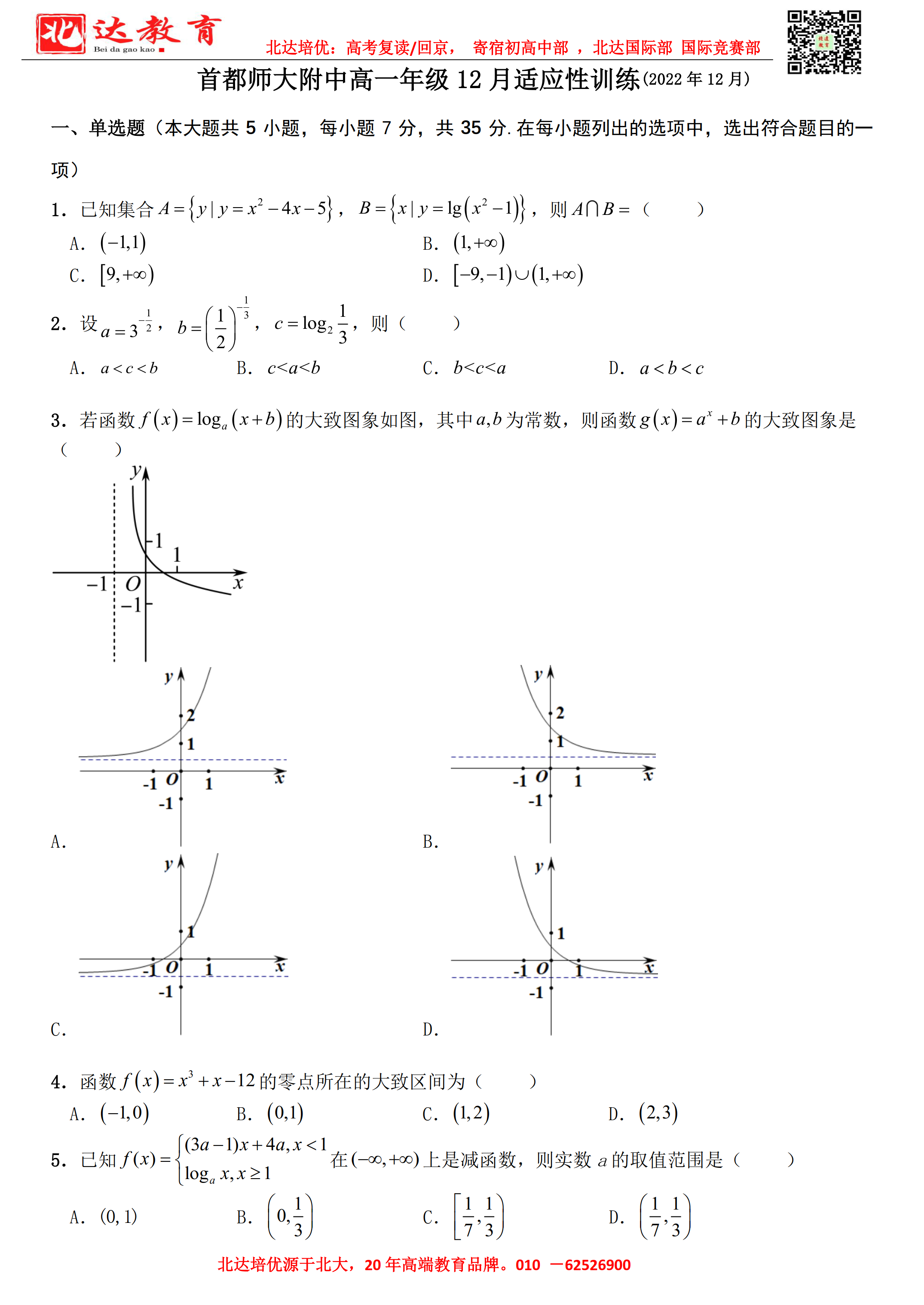12月开始,北京市各区高中年级将陆续开展12月月考。admw360高考复读学校教研组整理了2022北京首师大附中高一12月月考数学试题,附电子版可下载!