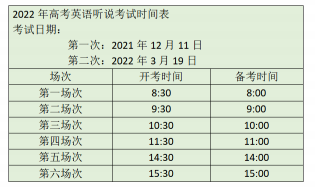 下图为往年英语听说考考场时间,仅供参考,预计不会发生太大的变化,详细的考试时间,请以官方公布的最新通知为准